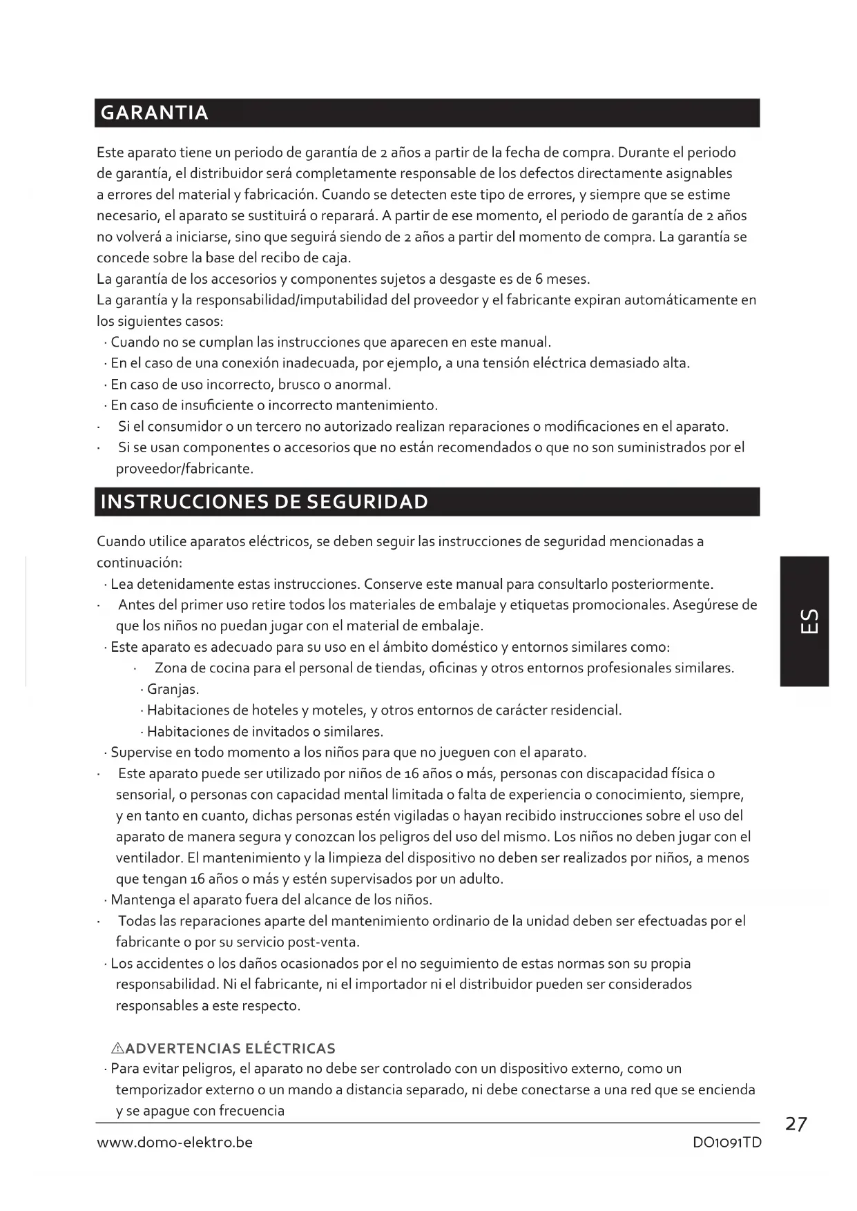 Este aparato pueda ser utilisé por niños de 16 años o más, personas con discapacidad física o sensorial, o personas con capacidad mental limitada o falta de experiencia o conocimiento, siempre, y en tanto en cuando, dichas personas estén vigiladas o hayan recibido instructuciones sobre el uso del aparato de manière segura y conozcan losPEGROS del uso del mesmo. Los niños no deben hacer para el ventilador. El mantenimiento y la limpieza del dispositivo no deben ser realizados por niños, a menos que tengan 16 años o más y estén supervisados por unadulto.
