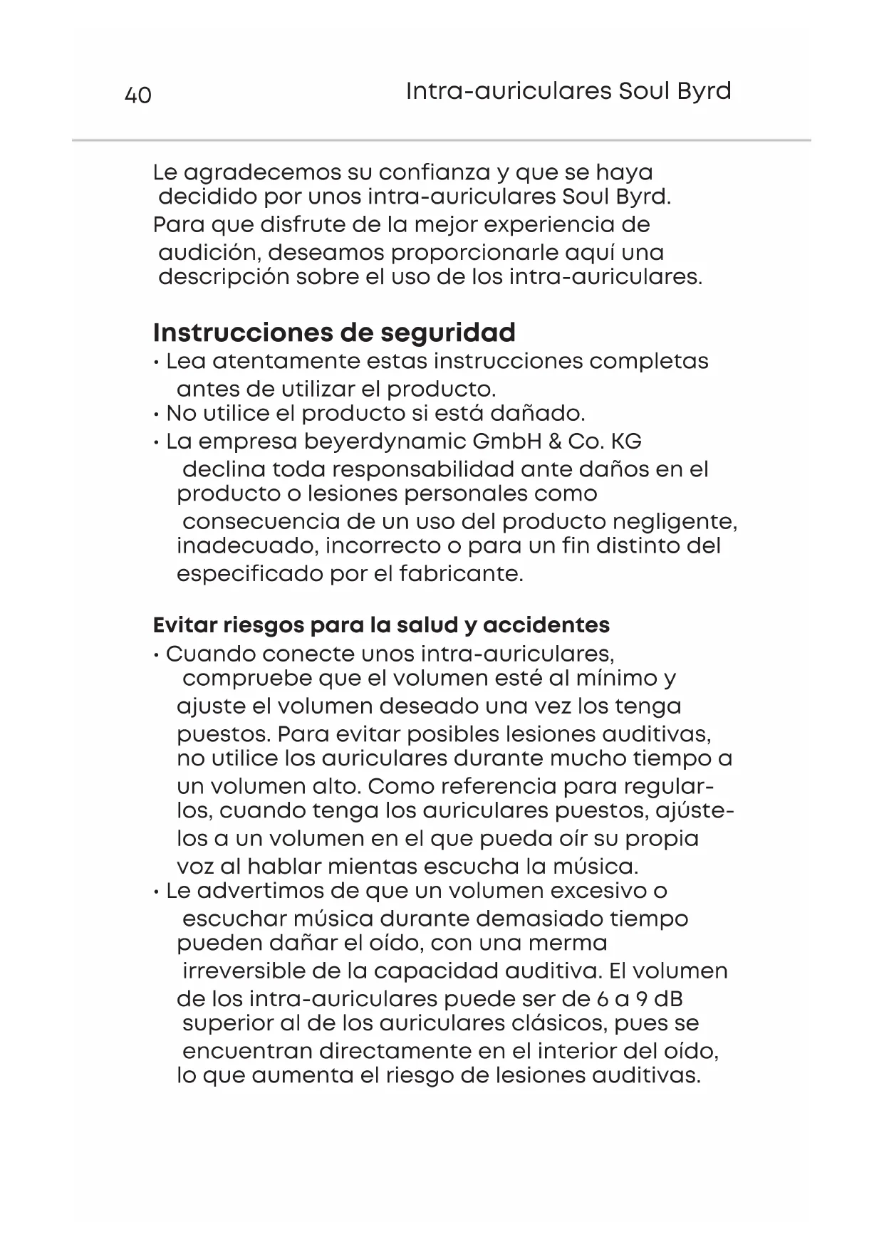 - No utilice el producto para usos diferentes a los indicados en eas inrucciones. beyerdynamic no asume ninguna responsabili- dad en caso de uso inadecuado del producto o sus accesorios.español Intra-auriculares Soul Byrd