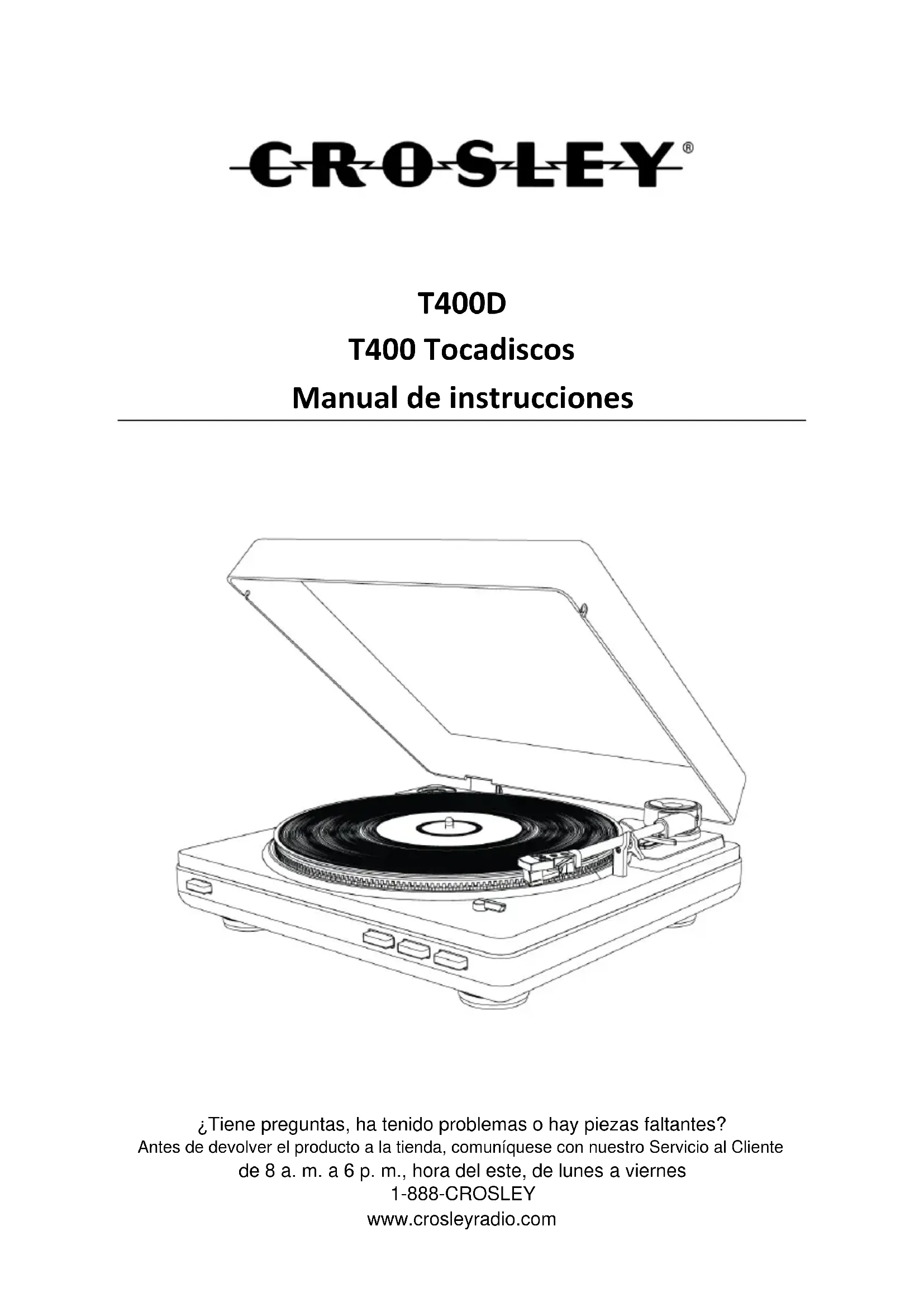 Encuentra gratis el manual del aparato T400D Crosley en formato PDF.