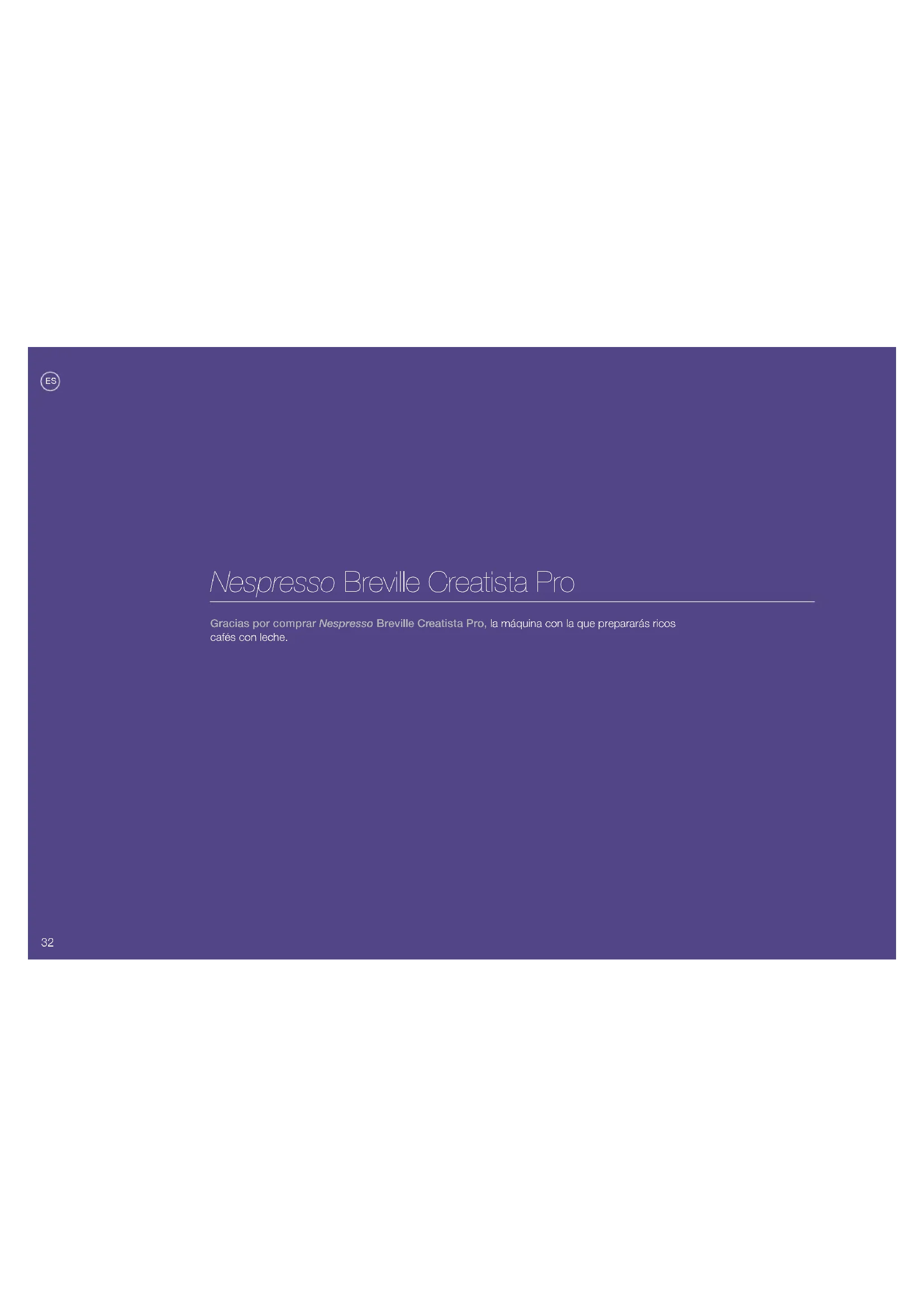 Nespresso Breville Creatista Pro Gracias por comprar Nespresso Breville Creatista Pro, la máquina con la que prepararás ricos cafés con leche.CREATISTA PROMY MAC HINEWelcome