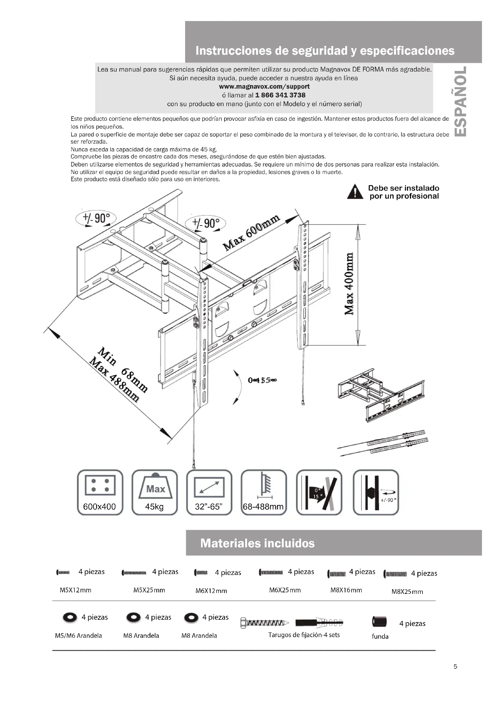 Descarga las instrucciones para tu Soporte de pared para televisión en formato PDF gratis! Encuentra tus instrucciones MFM00524 - MAGNAVOX y toma tu dispositivo electrónico nuevamente en la mano. En esta página están publicados todos los documentos necesarios para el uso de su dispositivo. MFM00524 de la marca MAGNAVOX.