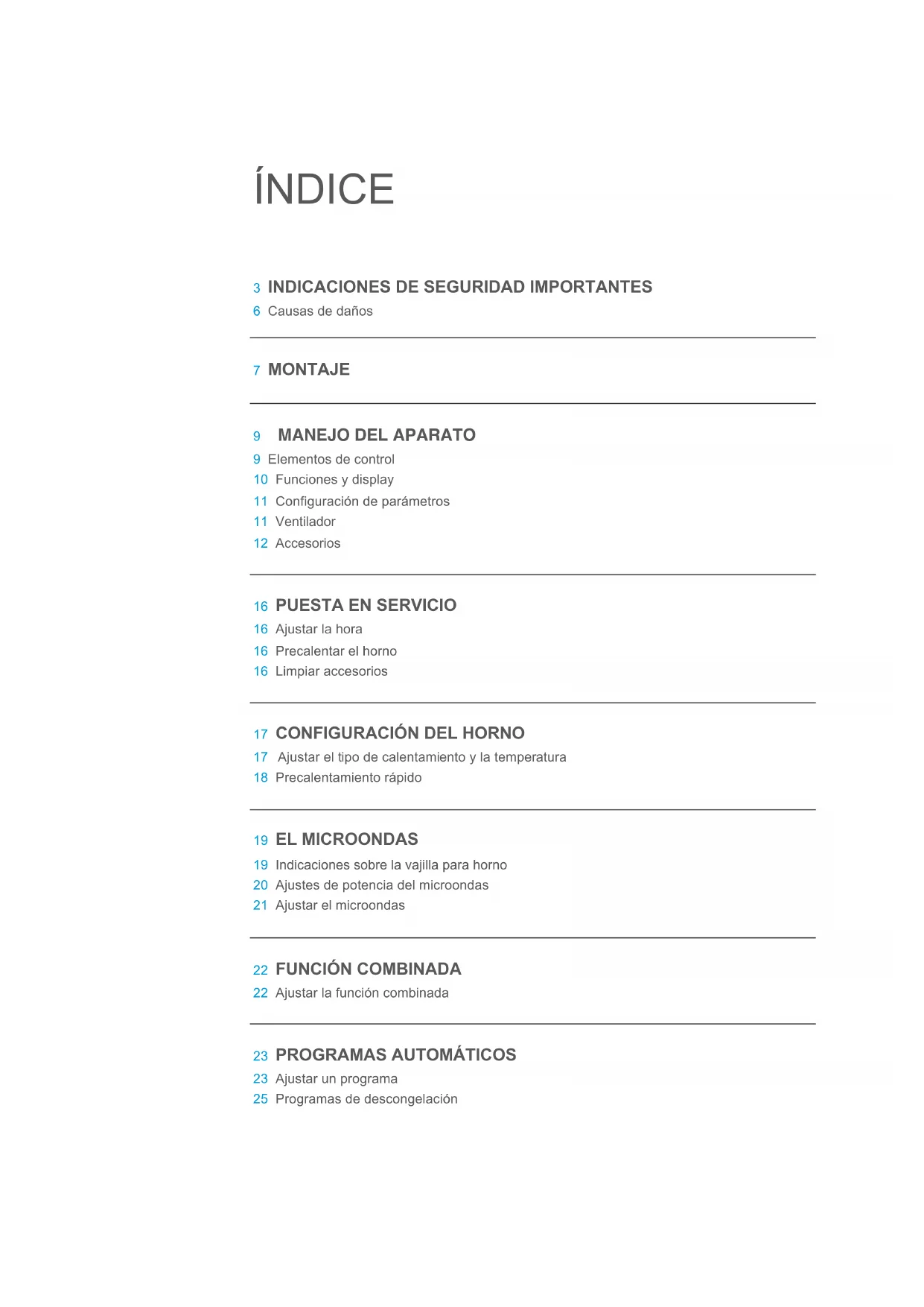 23 Ajustar un programa 25 Programas de descongelación27 PROGRAMAS DE COCCIÓN PREAJUSTADOS