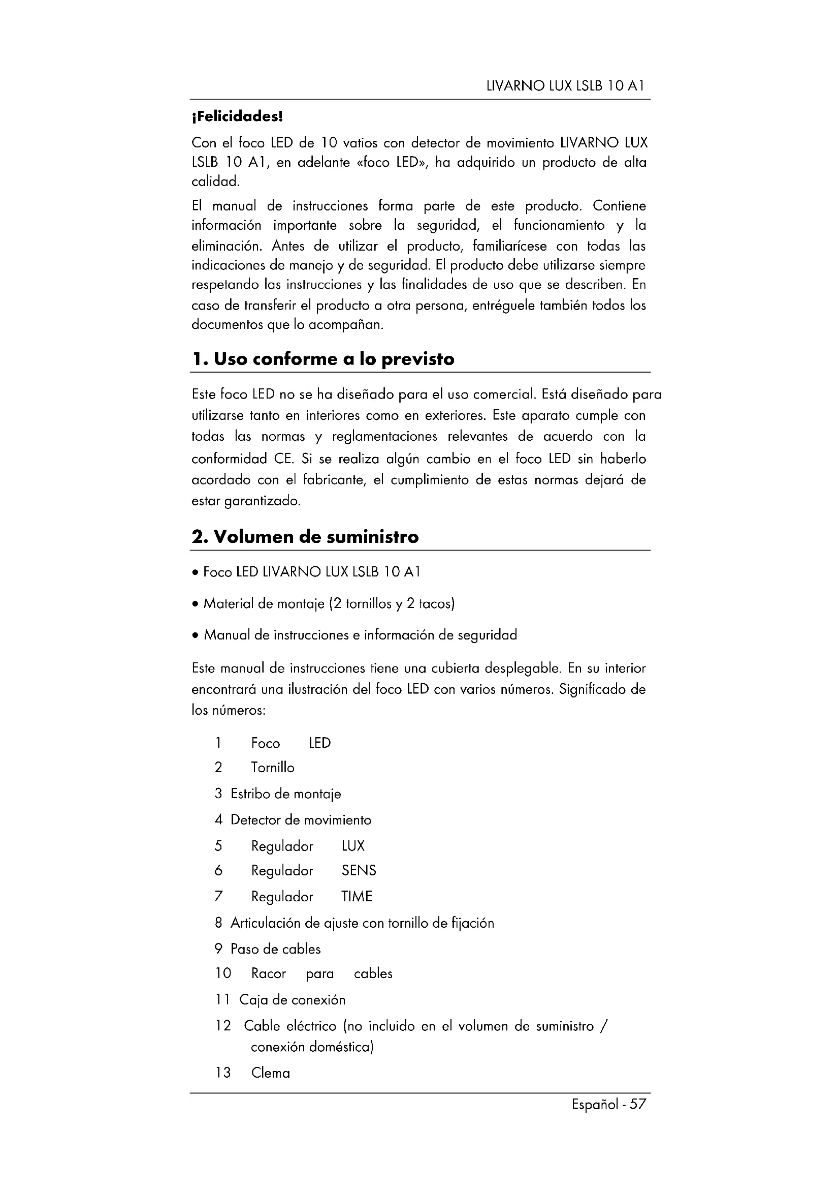 MANUAL DE USUARIO LSLB 10 A1 Livarno Lux