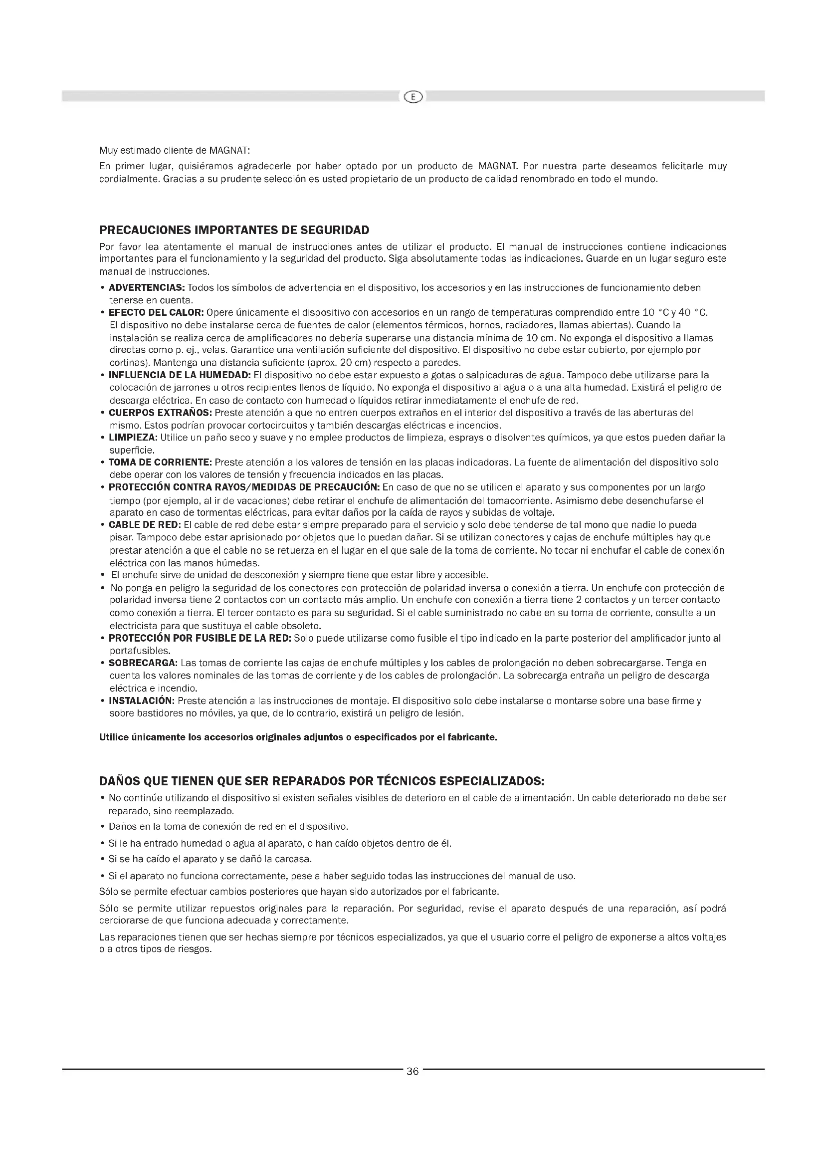 Muy estimado cliente de MAGNAT: En primer lugar, quisiéramos agradecerle por haber optado por un producto de MAGNAT. Por nuestra parte deseamos felicitarle muy cordialmente. Gracias a su prudente selección es usted propietario de un producto de calidad renombrado en todo el mundo.