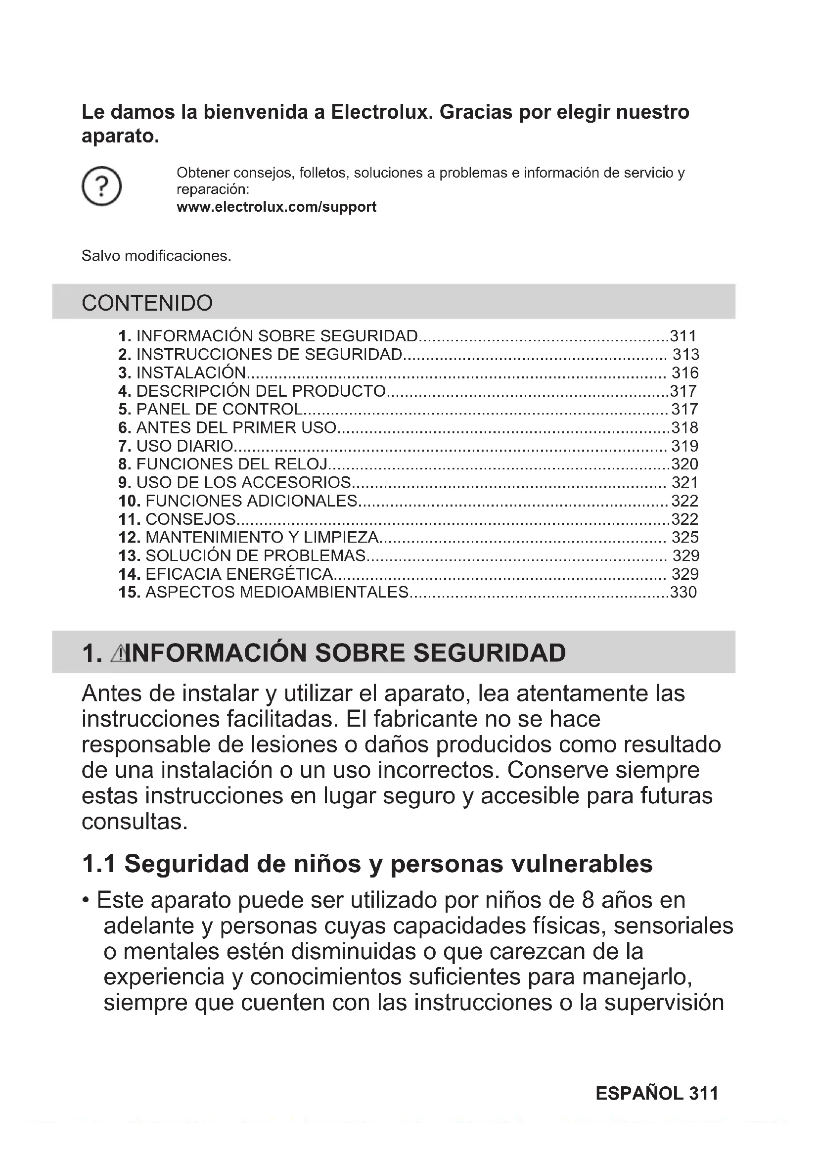 Leimos la bienvenida a Electrolux. Gracias por elegir nuestro aparato.
