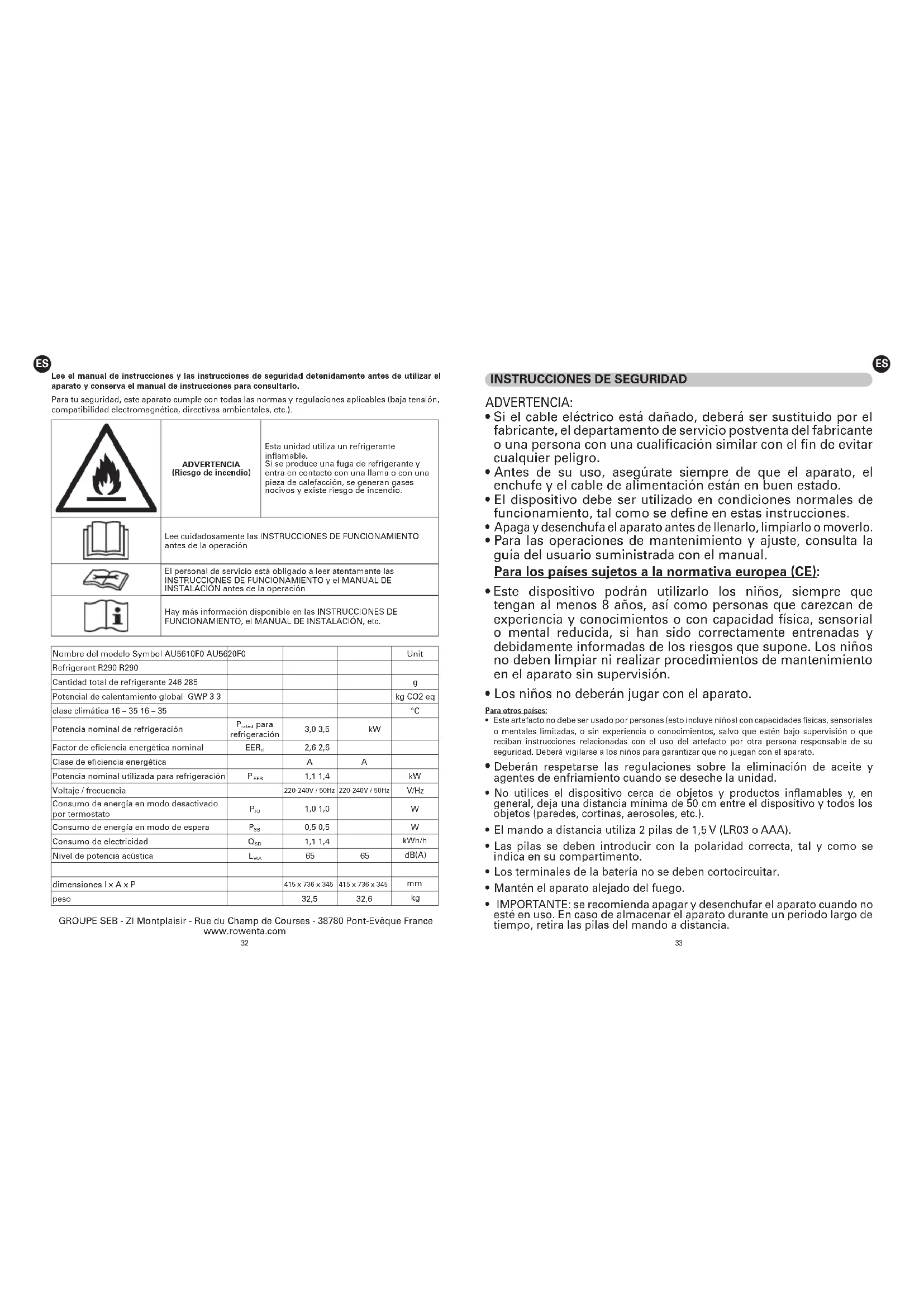 Turbo Eco Sense AU5610 - Acondicionador de aire ROWENTA - Manual de uso y guía de instrucciones gratis