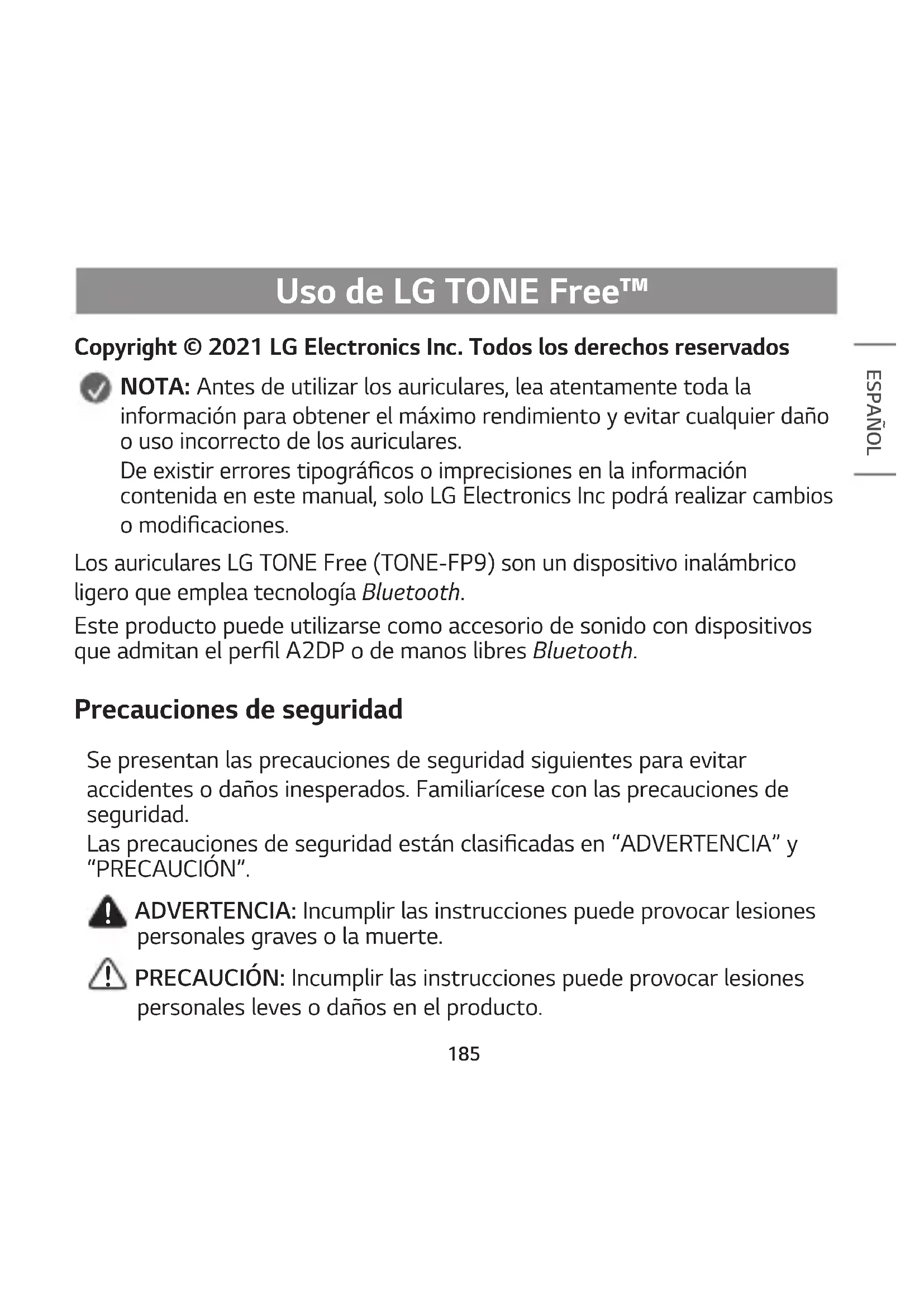 MANUAL DE USUARIO Tone Free DFP9 LG