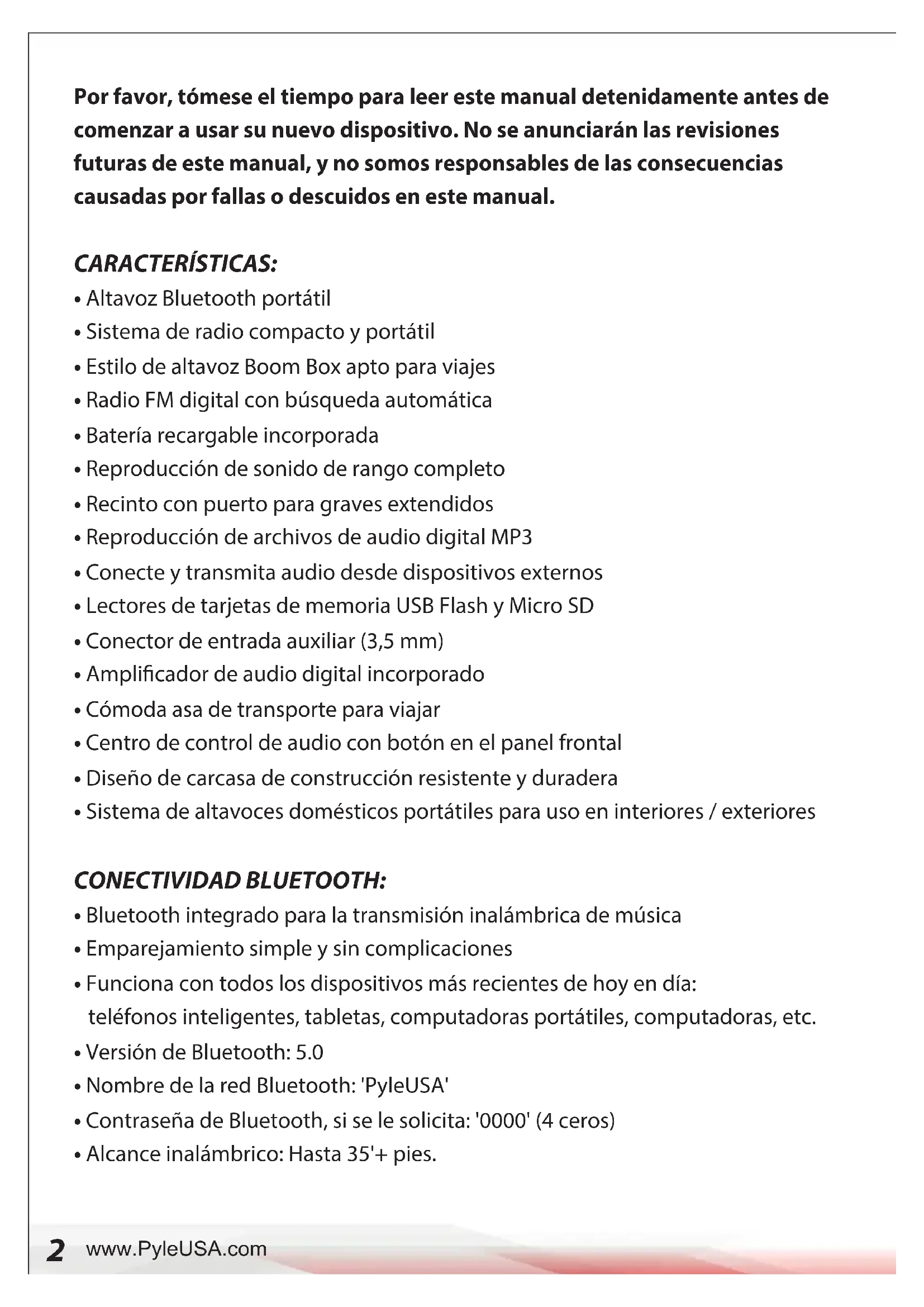 - Nombre de la red Bluetooth: 'PyleUSA'