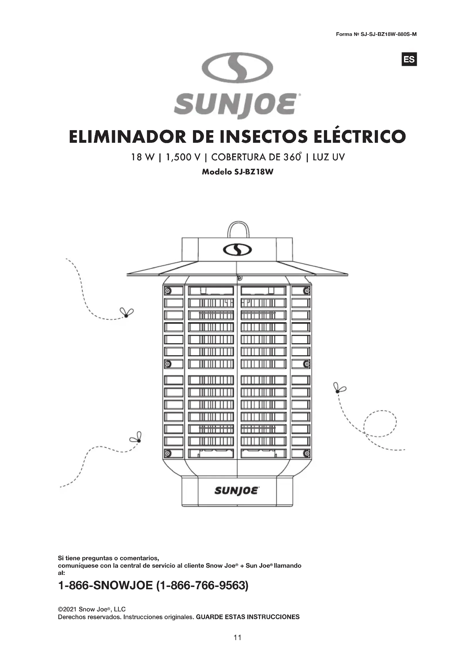 SJBZ18W - Control de plagas Sun Joe - Manual de uso y guía de instrucciones gratis