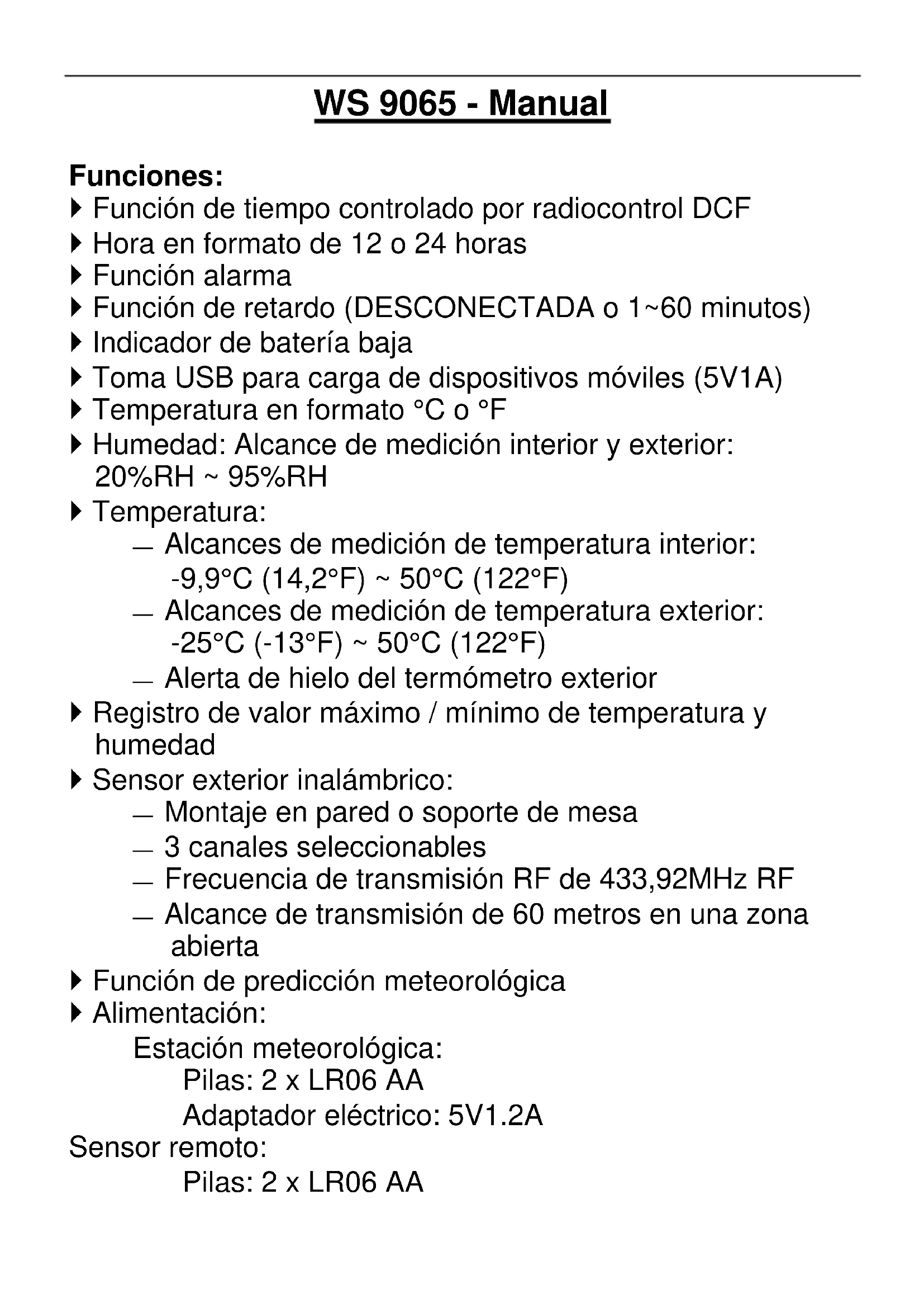 Encuentra gratis el manual del aparato WS 9065 TECHNOLINE en formato PDF.