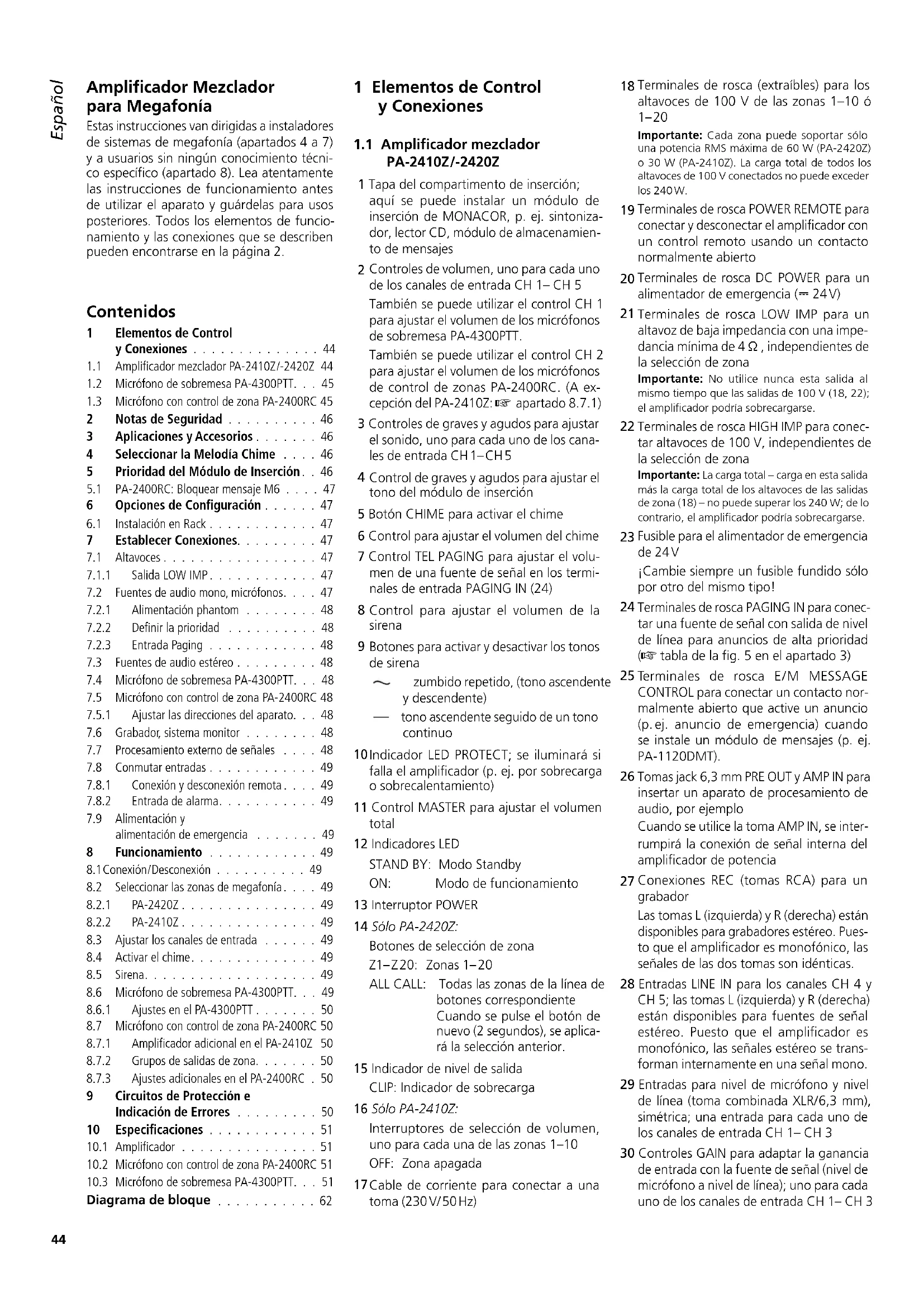 1.1 Amplificador mezclador PA-2410Z/-2420Z 44