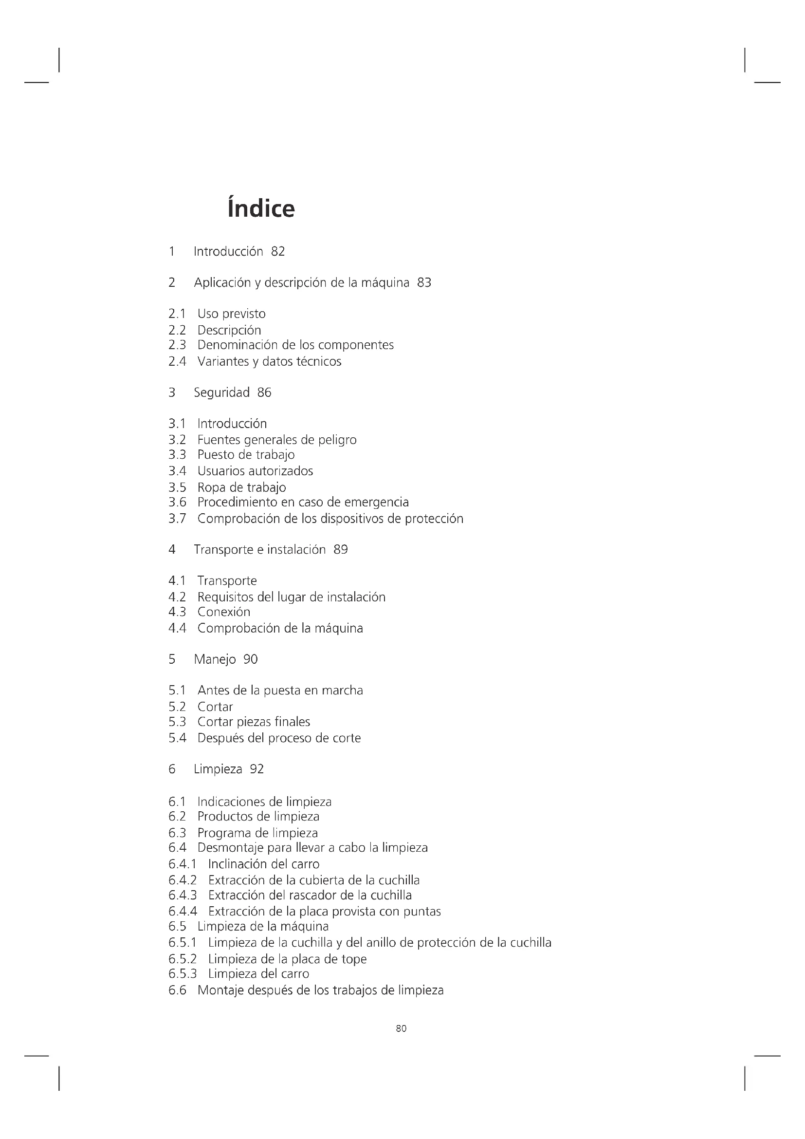 PELIGRO Tanto si la cuchilla está parada como en movimiento, se pueden producir daños pro- ducidos por cortes o amputaciones. Si la máquina no está en funcionamiento, la placa tope debe estar en todo momento cerrada en posición cero. PELIGRO La máquina funciona con una tensión de red de 230 V y no se debe abrir. Es imprescin- dible conectar el sistema de puesta a tierra ya que, de lo contrario, se pueden producir fuertes descargas eléctricas. PELIGRO ¡Atención! ¡Campos magnéticos y electromagnéticos! Antes de que las personas con implantes activos (marcapasos, etc.) se encuentren cerca de la máquina o la utilicen, un experto, el médico de la empresa y, en caso necesario, un cardiólogo deberán realizar conjuntamente y en el lugar de instalación una evalua- ción personalizada del riesgo. ADVERTENCIA Al inclinarse el carro, se puede aplastar la mano. Por lo tanto, mantenga la mano que no se utilice alejada de la máquina ATENCIÓN En la zona de la pieza de sujeción de alimentos, existe riesgo de sufrir lesiones pro- ducidas por las puntas y por la caída de la pieza de sujeción de alimentos durante el proceso de inserción. ATENCIÓN Durante el montaje de componentes que se pueden desmontar para limpiar. 3 Seguridad87