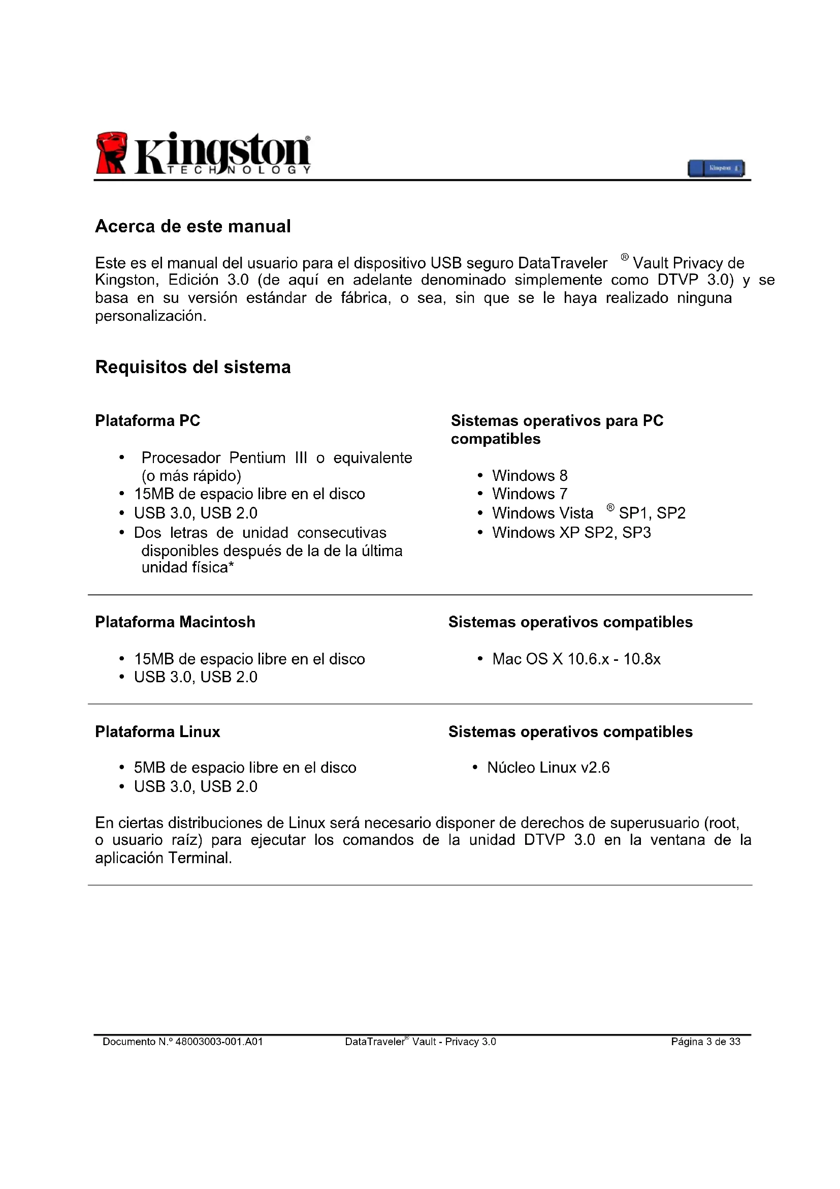 Encuentra gratis el manual del aparato DataTraveler Vault Privacy 3.0 KINGSTON en formato PDF.