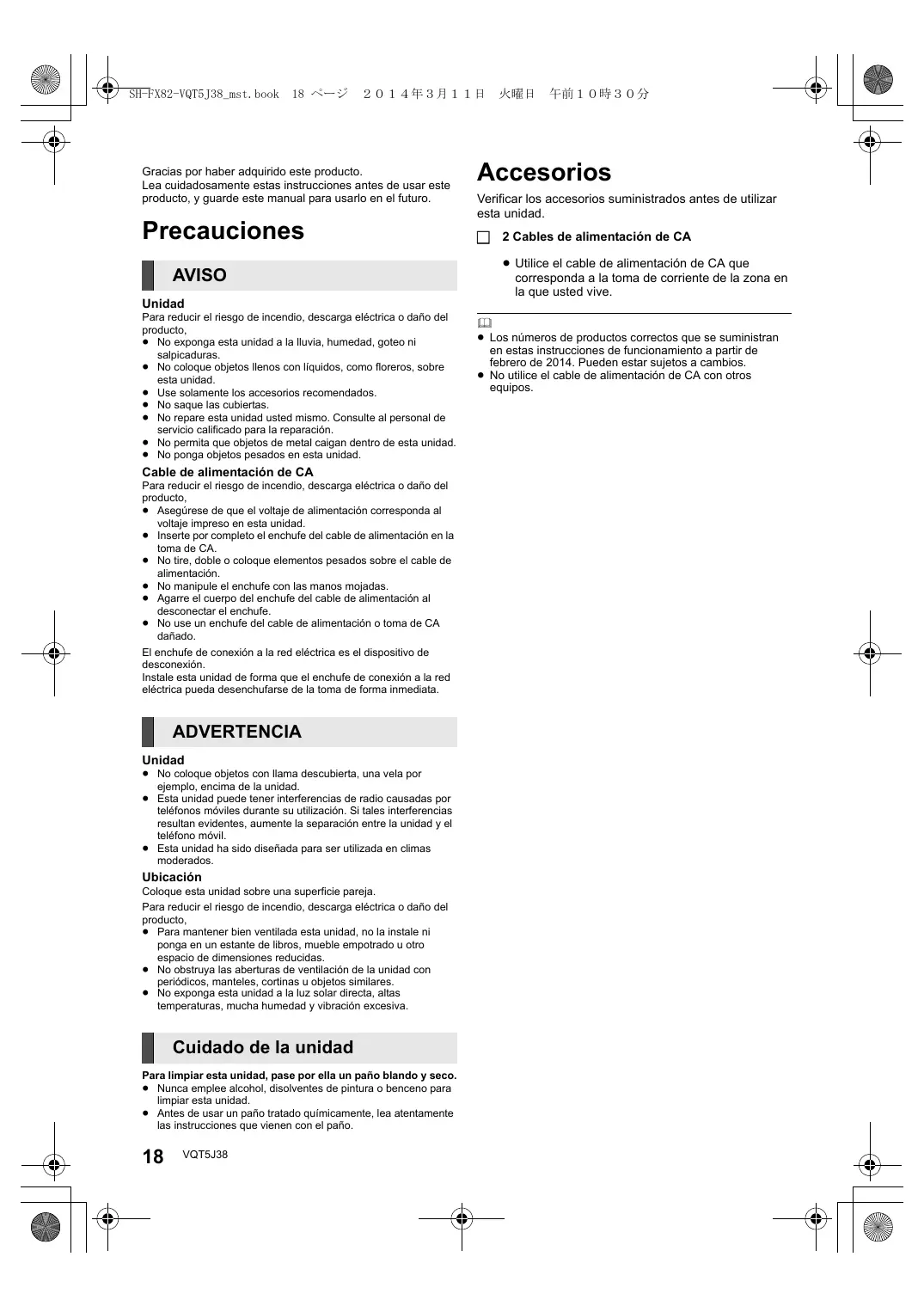 MANUAL DE USUARIO SF-FX82GA PANASONIC