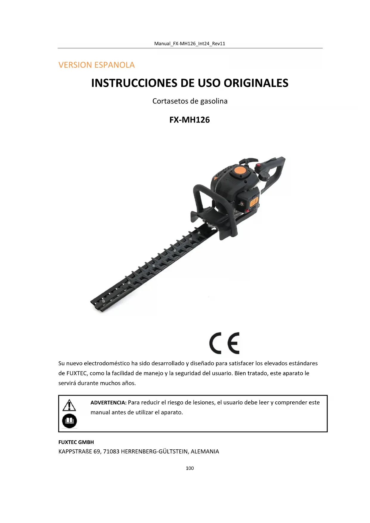 Descarga las instrucciones para tu Cortasetos en formato PDF gratis! Encuentra tus instrucciones FXMH126 - Fuxtec y toma tu dispositivo electrónico nuevamente en la mano. En esta página están publicados todos los documentos necesarios para el uso de su dispositivo. FXMH126 de la marca Fuxtec.