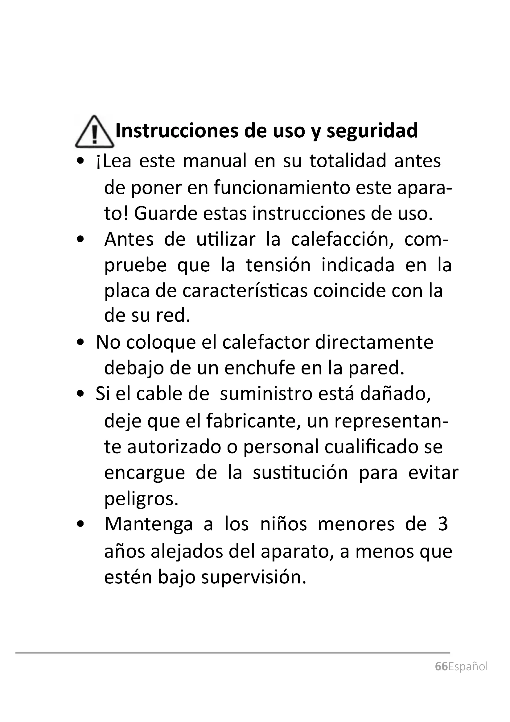 - Mantenga a los niños menores de 3 años alejados del aparato, a menos que estén bajo supervisión.67 Español