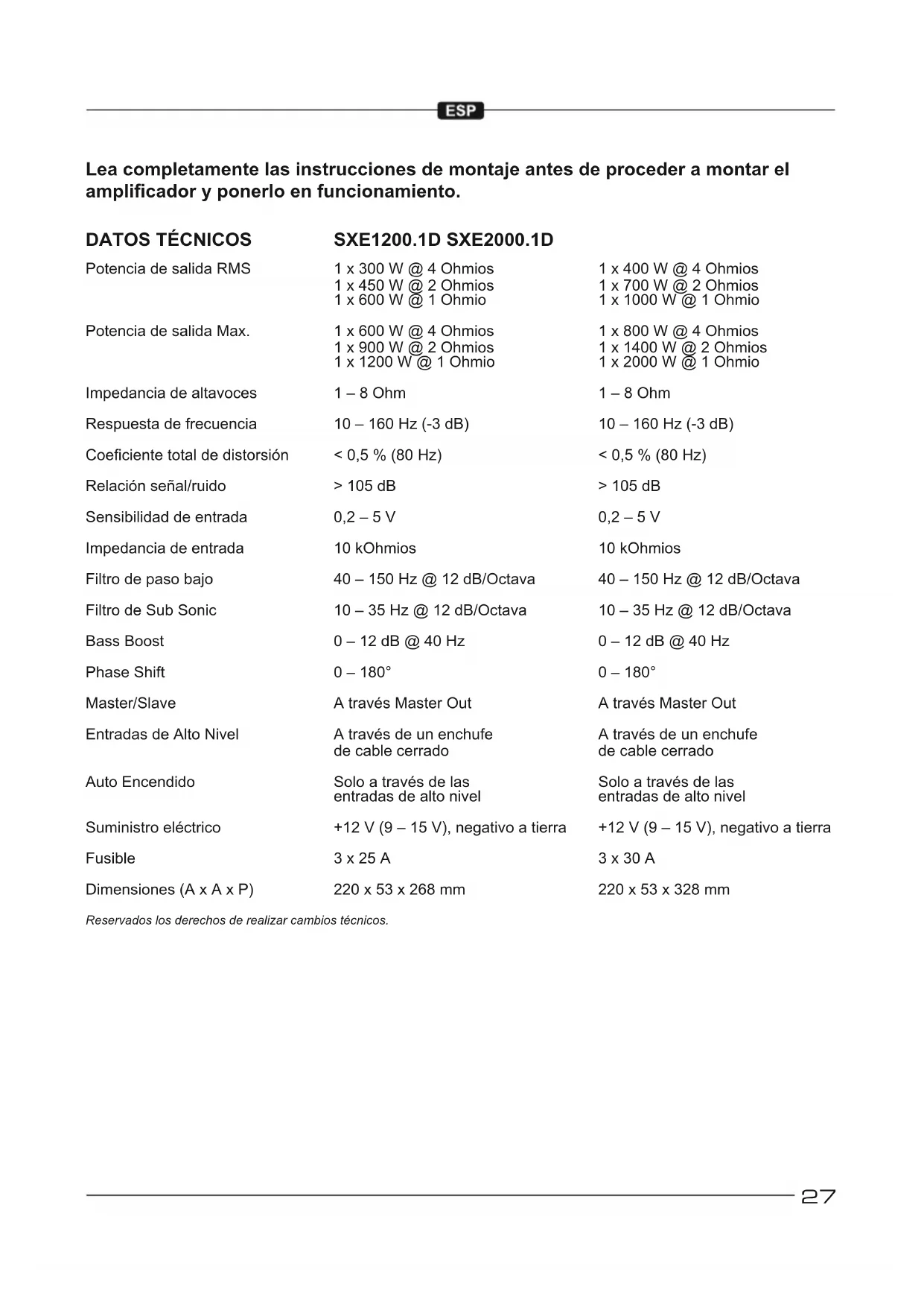 Encuentra gratis el manual del aparato Signum SXE2000.1D ESX en formato PDF.