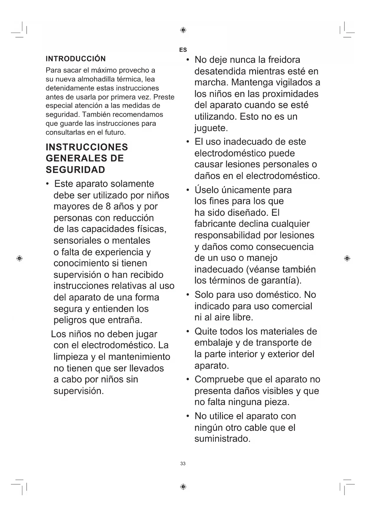 INTRODUCCIÓN Para sacar el máximo provecho a su nueva almohadilla térmica, lea detenidamente estas instrucciones antes de usarla por primera vez. Preste especial atención a las medidas de seguridad. También recomendamos que guarde las instrucciones para consultarlas en el futuro. INSTRUCCIONES GENERALES DE SEGURIDAD