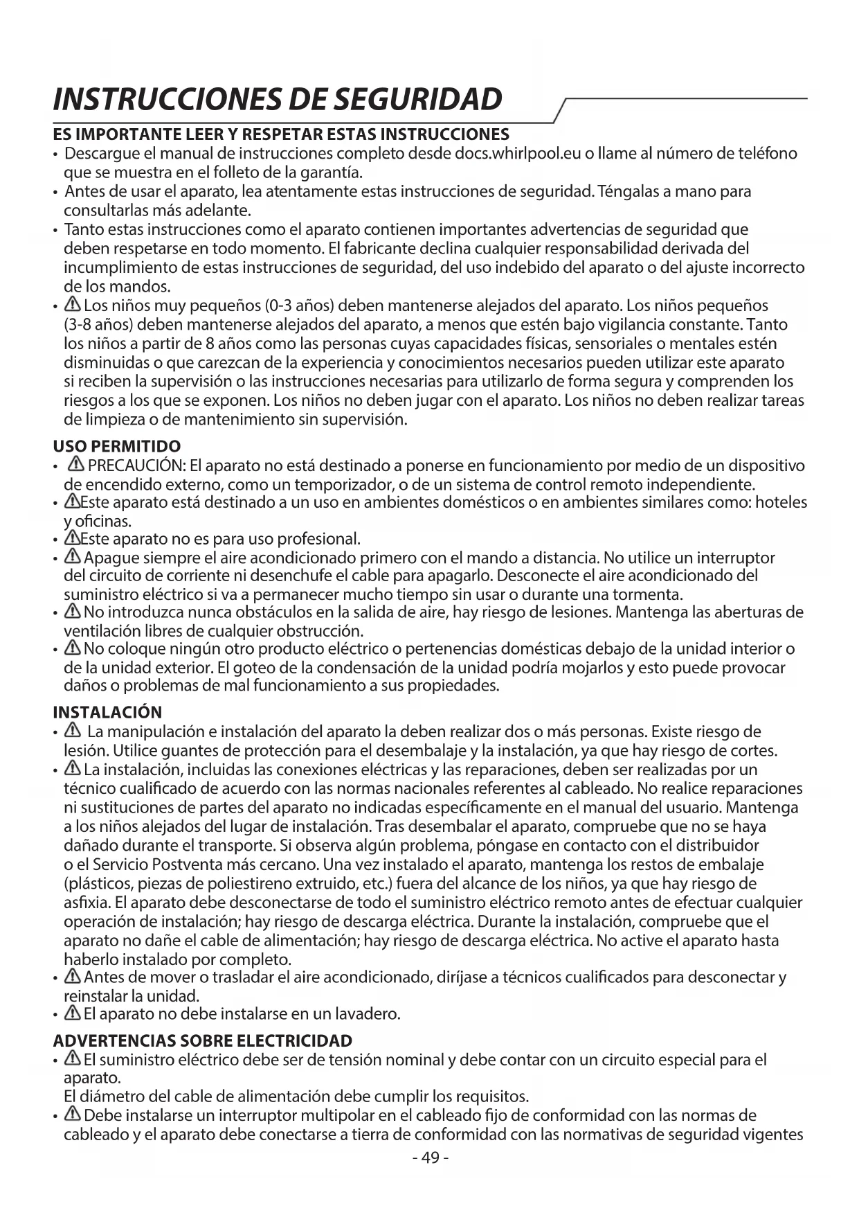 SPICR312A3WF - Aire acondicionado WHIRLPOOL - Manual de uso y guía de instrucciones gratis