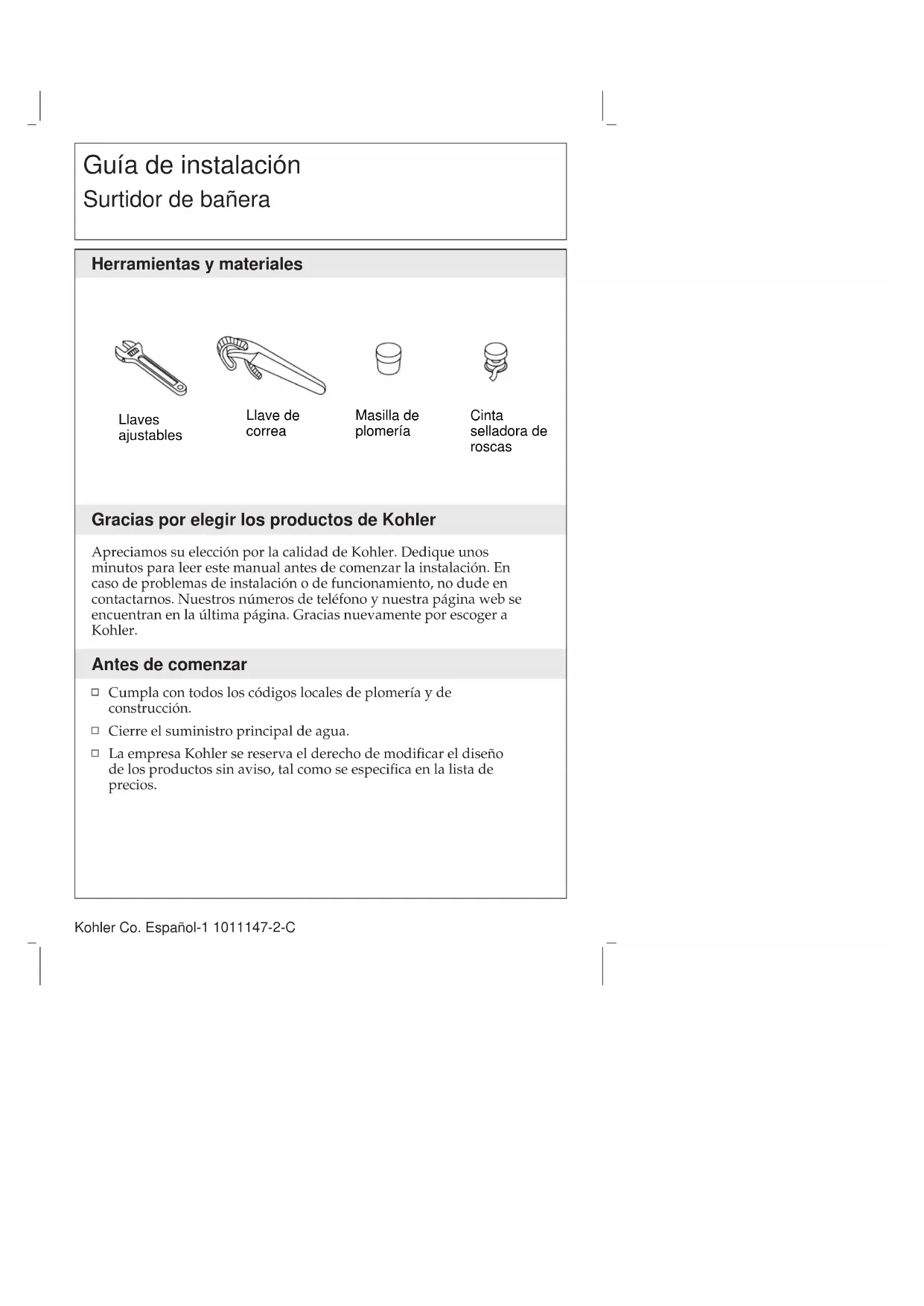 Descarga las instrucciones para tu Grifo en formato PDF gratis! Encuentra tus instrucciones K6854 - KOHLER y toma tu dispositivo electrónico nuevamente en la mano. En esta página están publicados todos los documentos necesarios para el uso de su dispositivo. K6854 de la marca KOHLER.