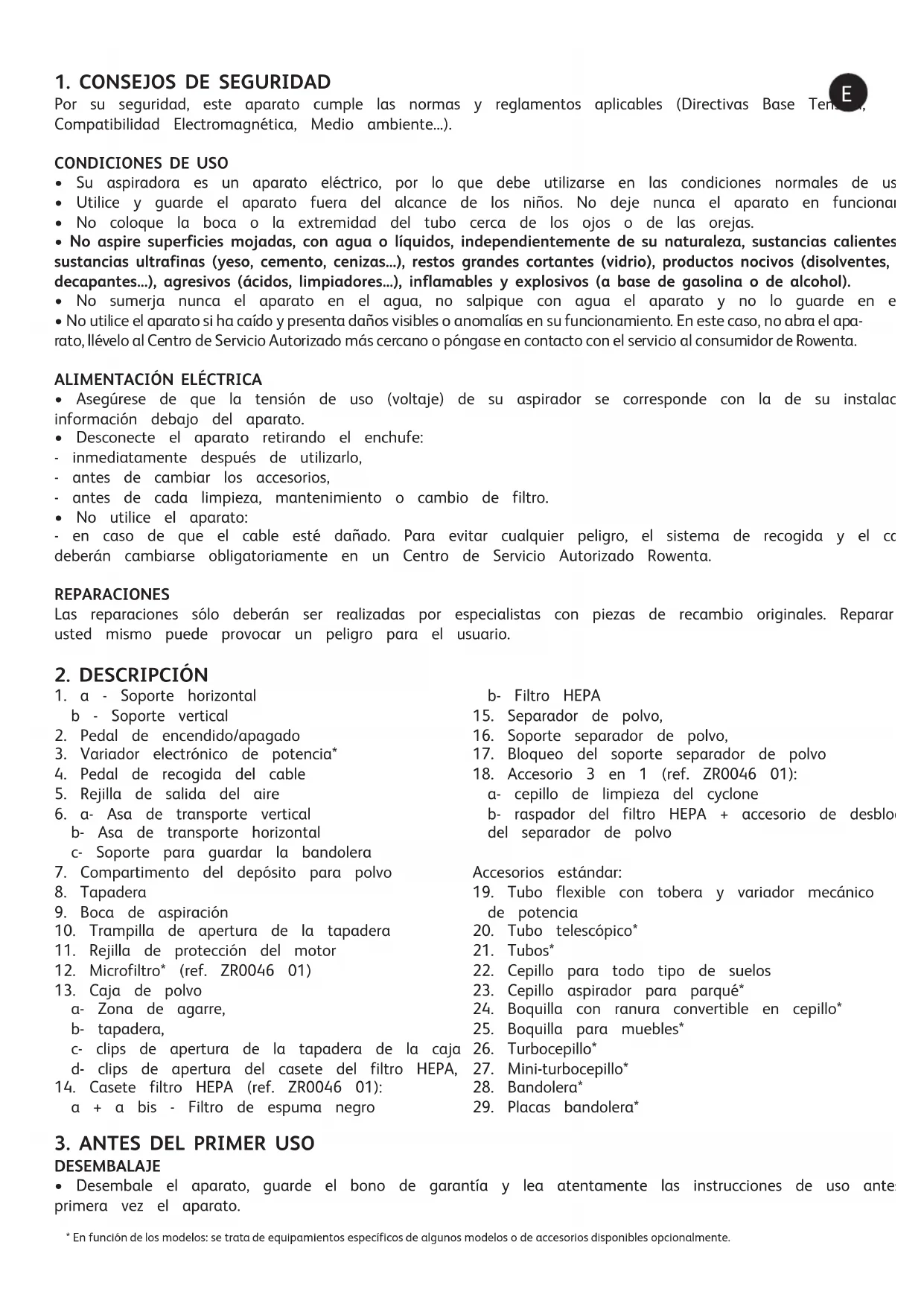 - En caso de dificultad para conseguir los accesorios y los filtros para esta aspiradora, póngase en contacto con el servi- cio al consumidor Rowenta.