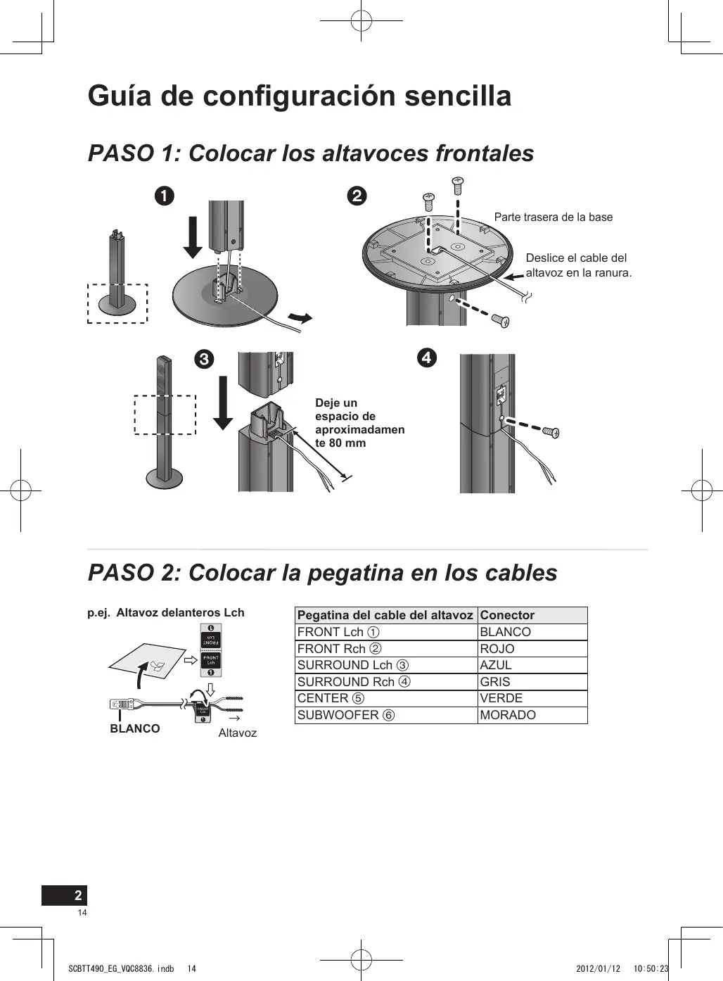 Guía de configuración sencilla Blu-ray Disc™ Sistema de sonido “Home Theater” (Teatro en casa) Guía de configuración sencilla PASO 1: Colocar los altavoces frontales