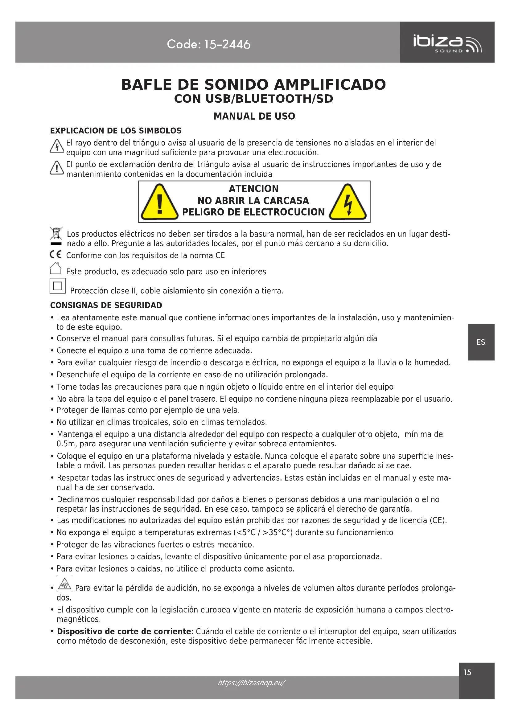 https://ibizashop.eu/ 16. Interruptor encendido / apagado 17. Salida de altavoz de 8 ohmios 18. Entrada de red 19. Indicador de encendido: se ilumina cuando la unidad está encendida 20. Interruptor selector de micrófono/línea