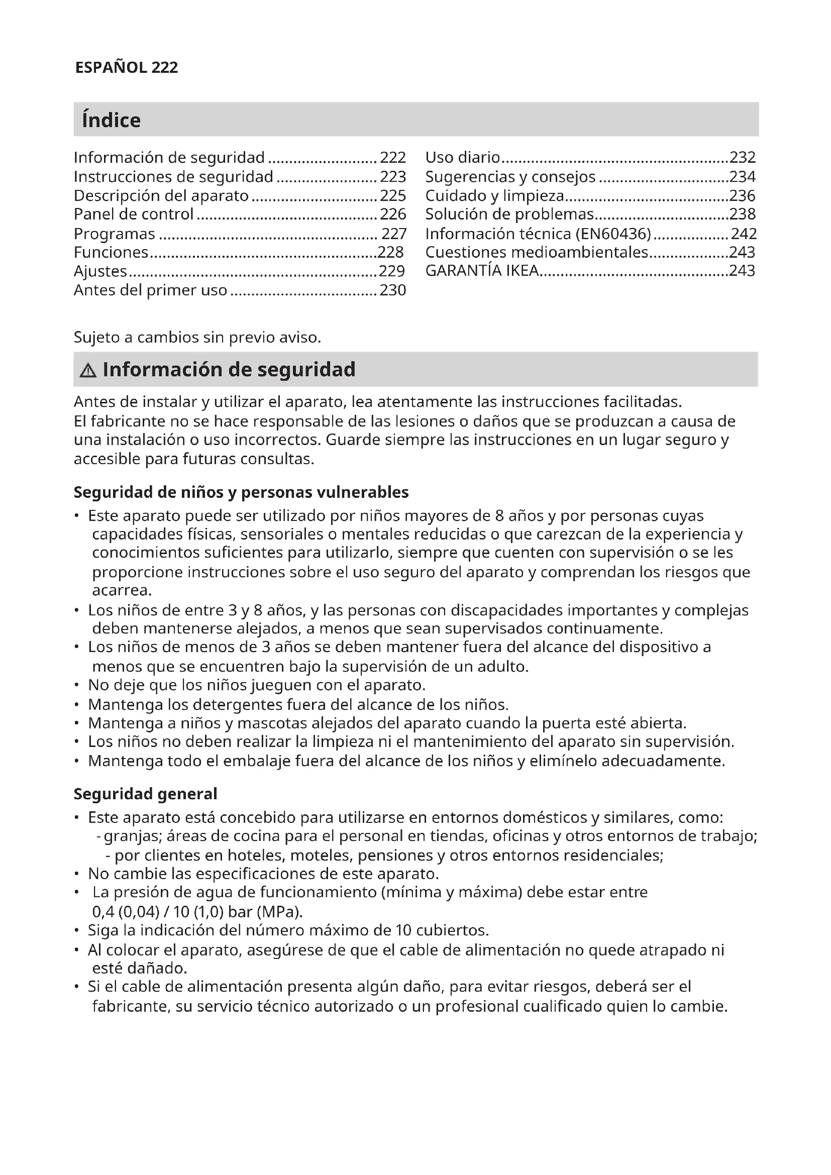 GARANTÍA IKEA .............................................243ESPAÑOL 223