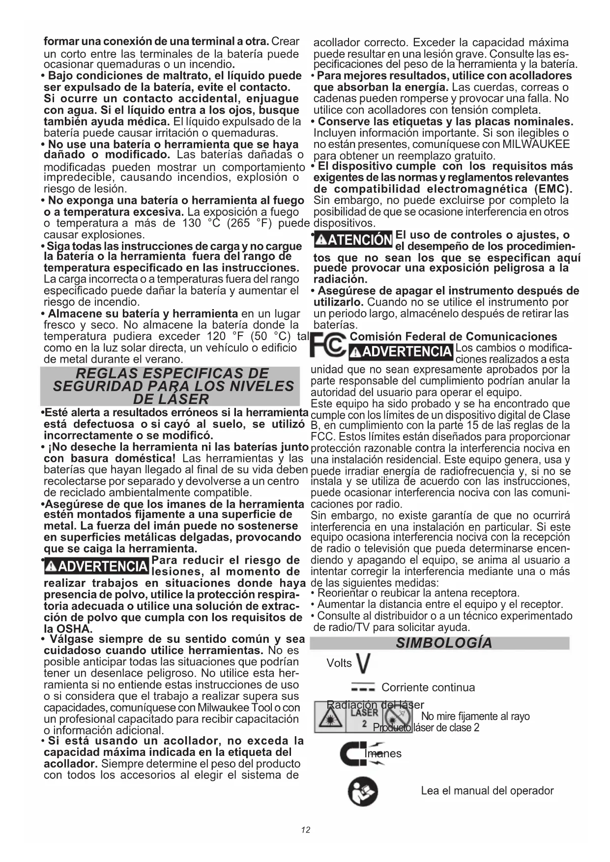MANUAL DE USUARIO M12 363120 MILWAUKEE