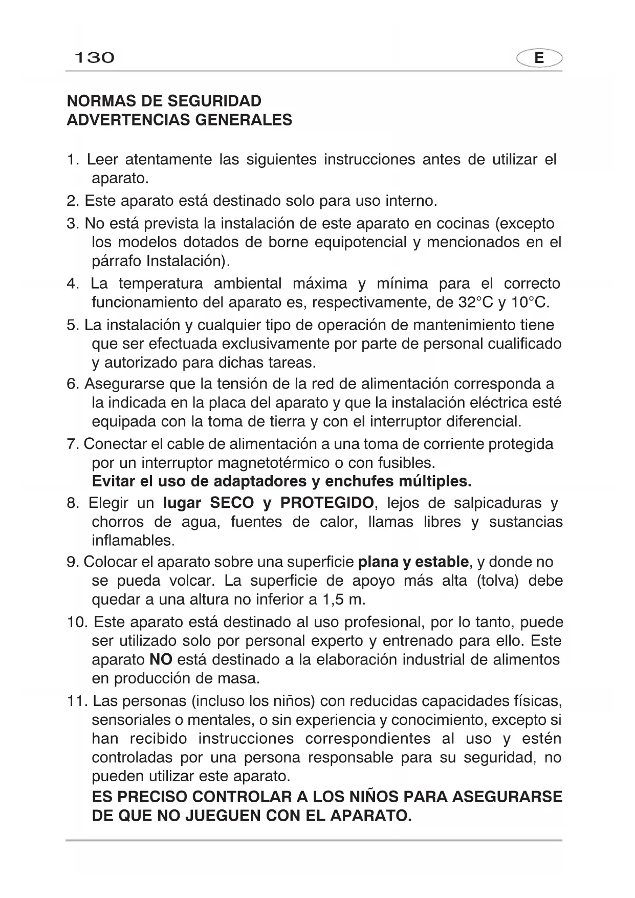ser utilizado solo por personal experto y entrenado para ello. Este aparato NO está destinado a la elaboración industrial de alimentos en producción de masa.