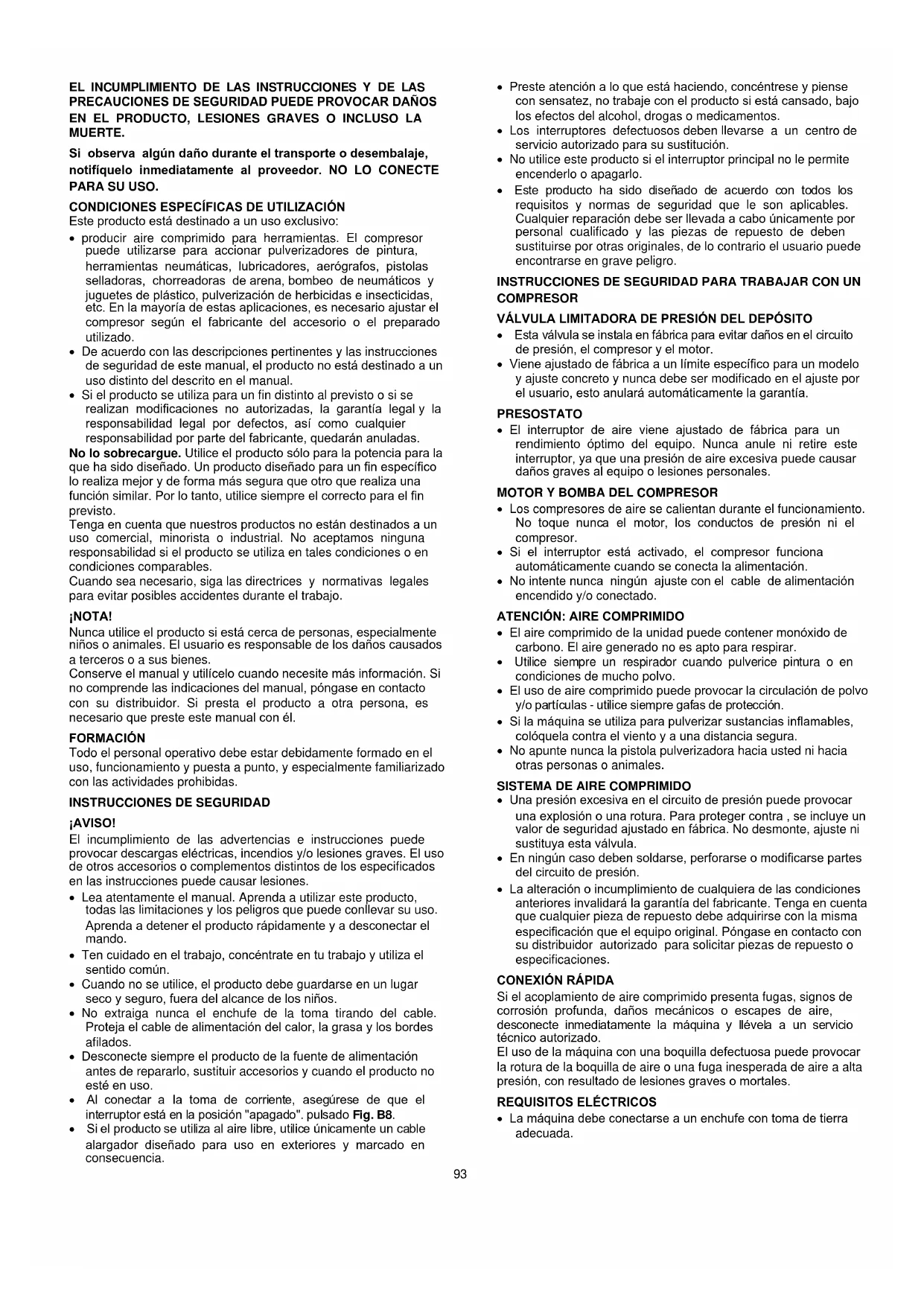 - Los compresores de aire se calientan durante el funcionamiento. No toque nunca el motor, los conductos de presión ni el compresor.