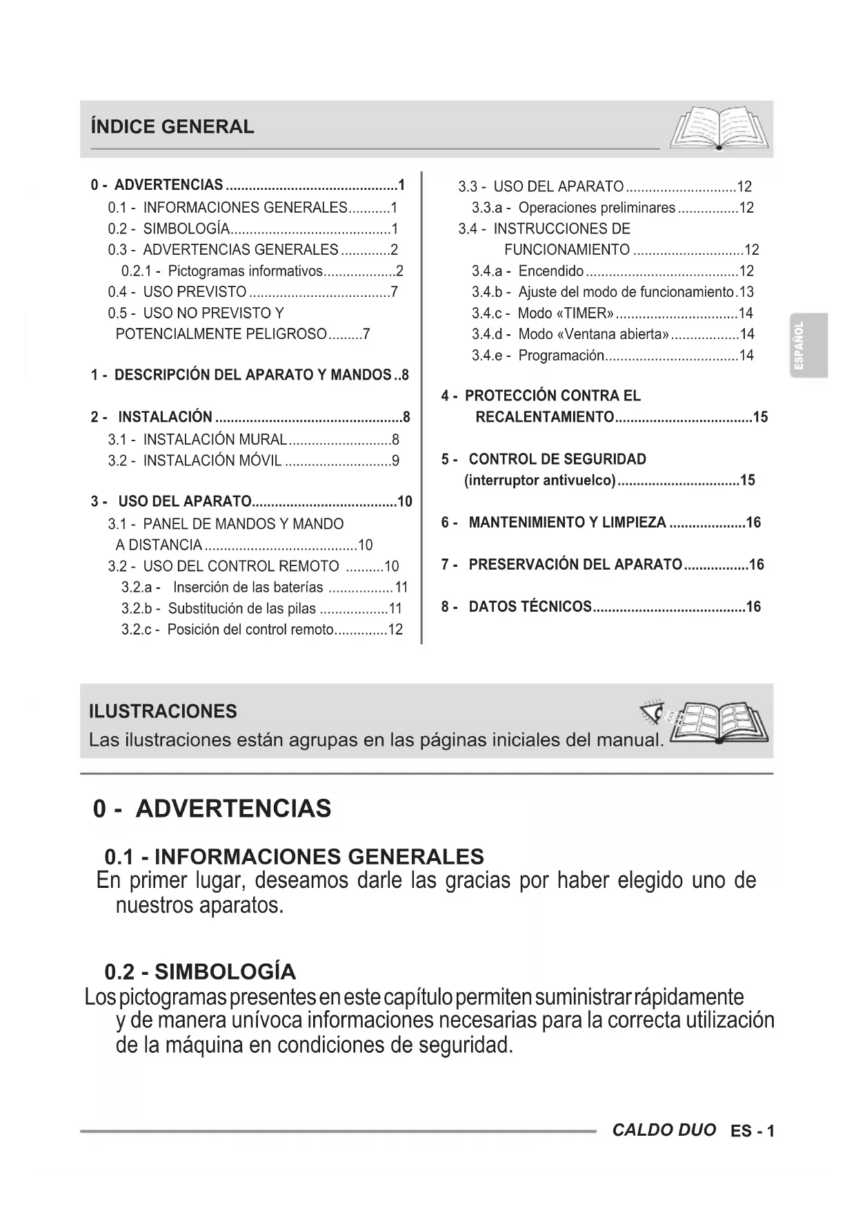 Caldo Duo - Calefacción OLIMPIA SPLENDID - Manual de uso y guía de instrucciones gratis