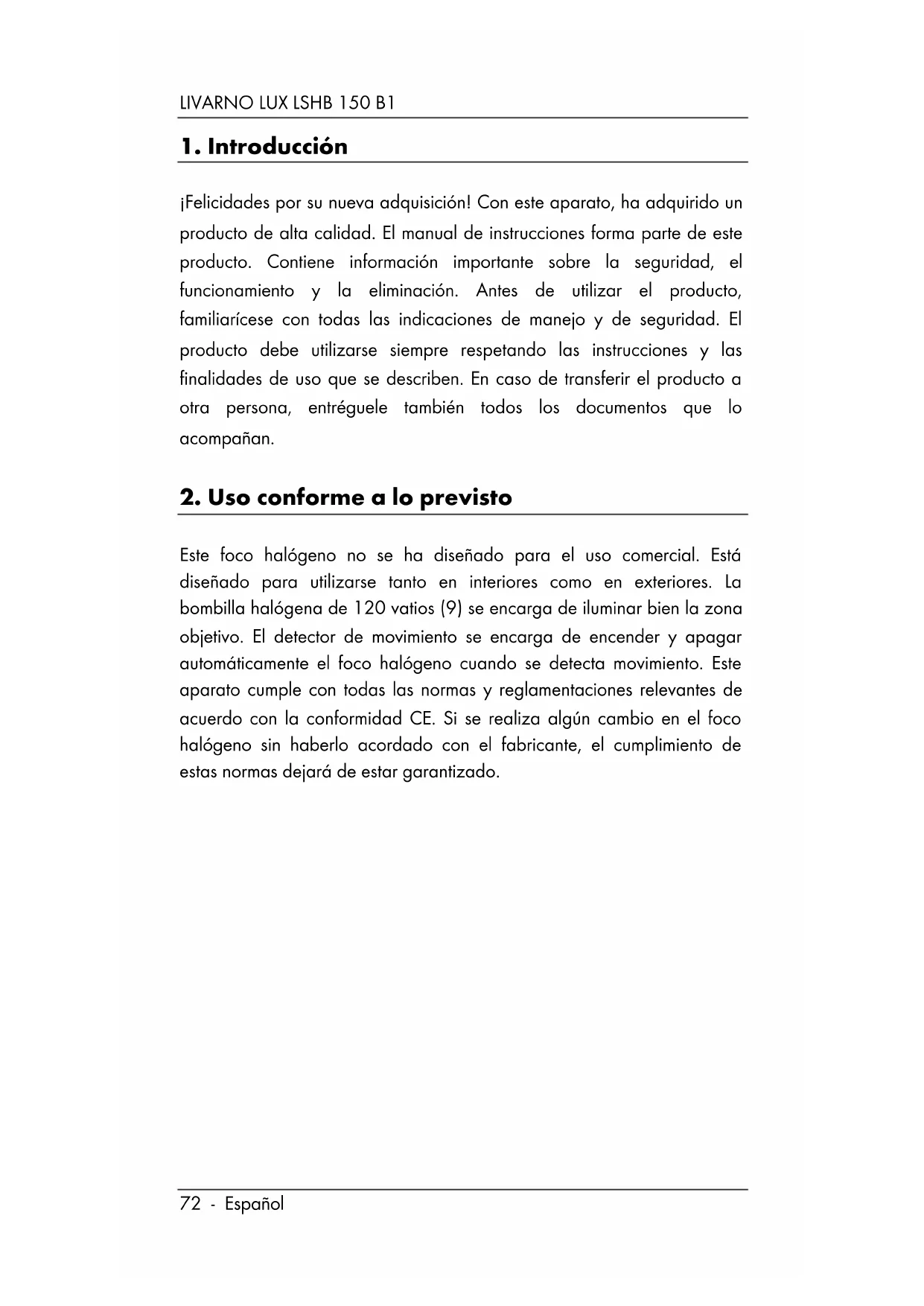MANUAL DE USUARIO LSHB 150 B1 Livarno Lux