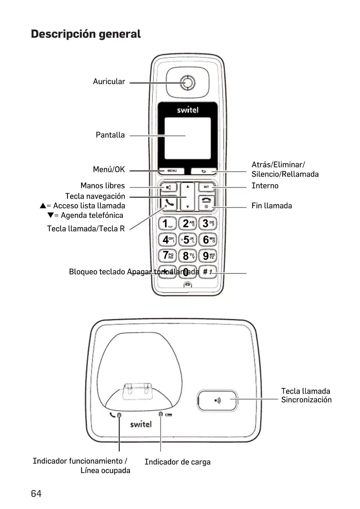 Descarga las instrucciones para tu Teléfono en formato PDF gratis! Encuentra tus instrucciones DC2000 - SWITEL y toma tu dispositivo electrónico nuevamente en la mano. En esta página están publicados todos los documentos necesarios para el uso de su dispositivo. DC2000 de la marca SWITEL.