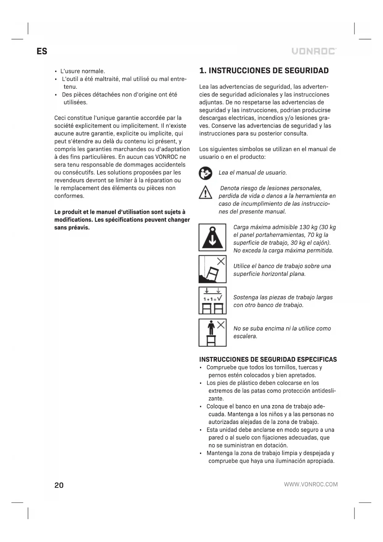 WB502XX - Banco de trabajo Vonroc - Manual de uso y guía de instrucciones gratis