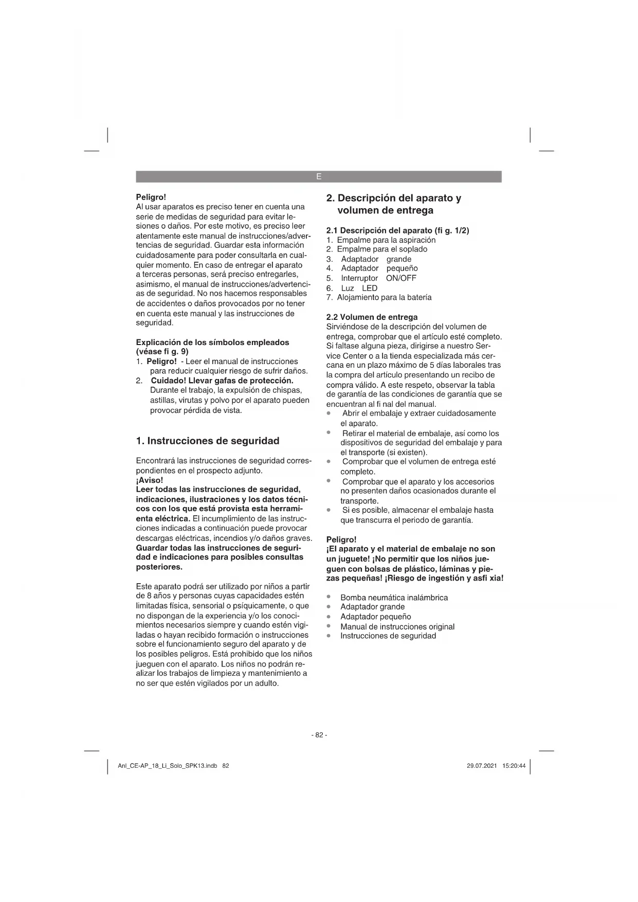 ce una protección para los oídos adecuada. Anl_CE-AP_18_Li_Solo_SPK13.indb 83Anl_CE-AP_18_Li_Solo_SPK13.indb 83 29.07.2021 15:20:4429.07.2021 15:20:44E