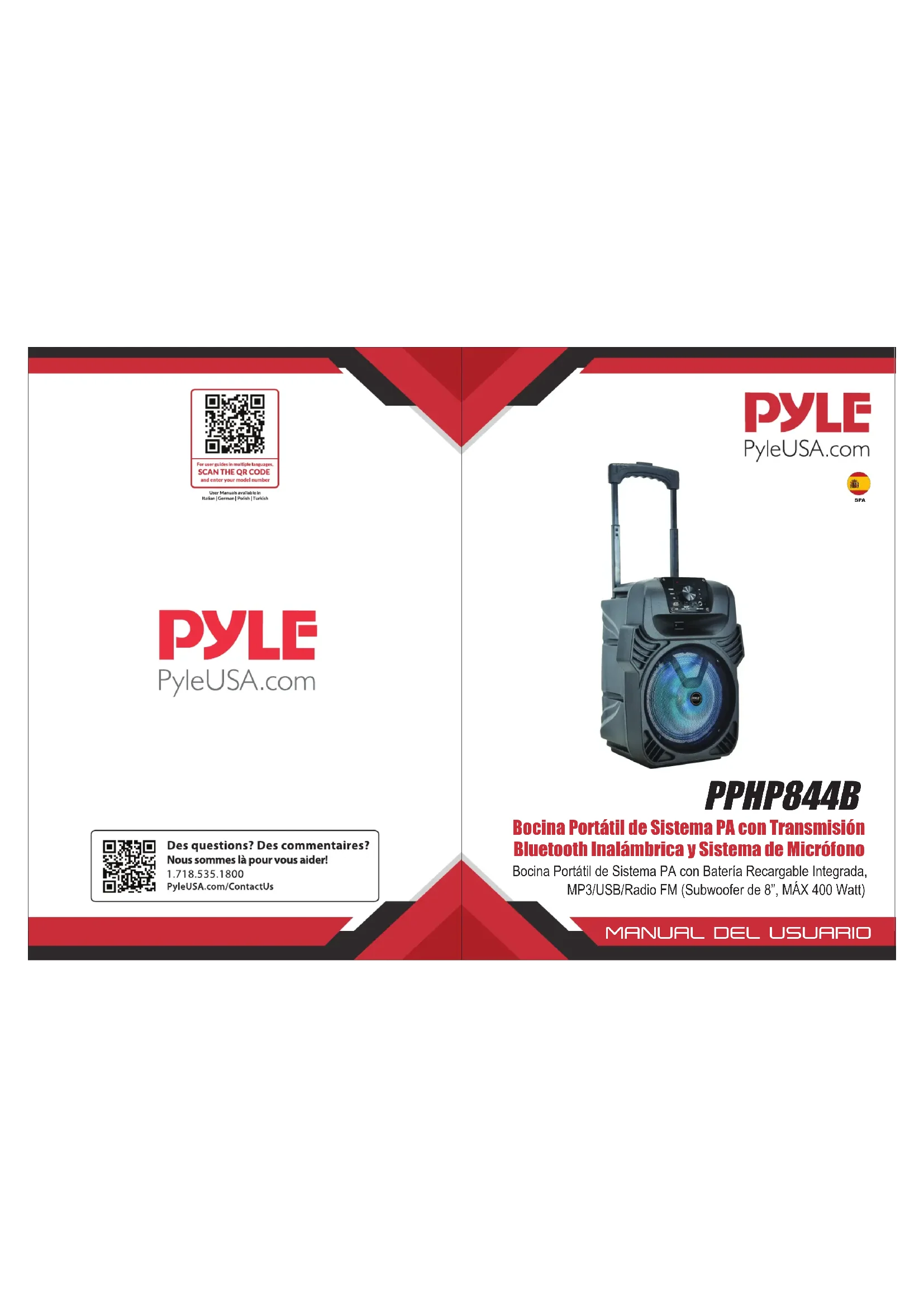 Descarga las instrucciones para tu Vocero en formato PDF gratis! Encuentra tus instrucciones PPHP844B - Pyle y toma tu dispositivo electrónico nuevamente en la mano. En esta página están publicados todos los documentos necesarios para el uso de su dispositivo. PPHP844B de la marca Pyle.