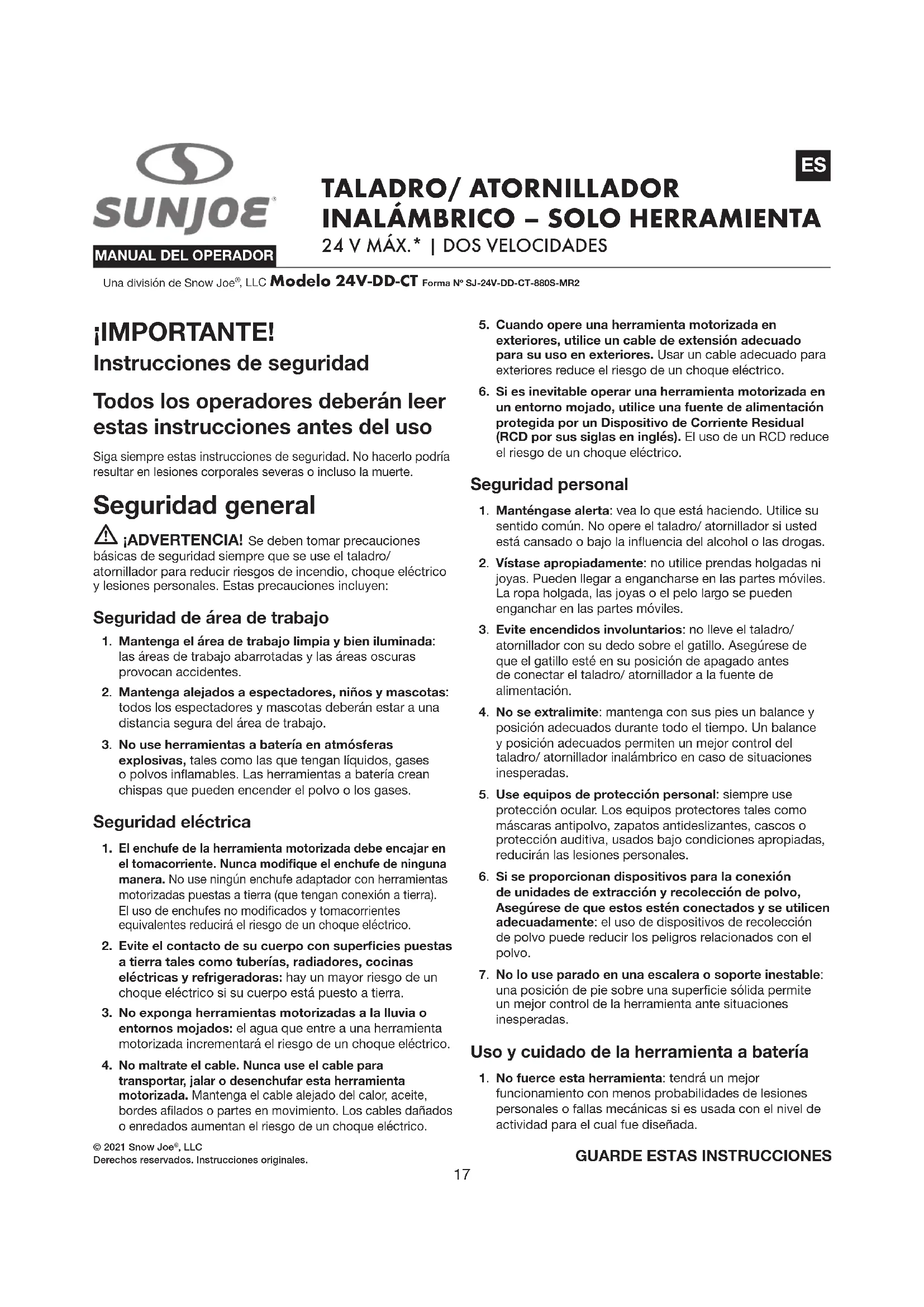 MANUAL DE USUARIO 24VDDCT Sun Joe