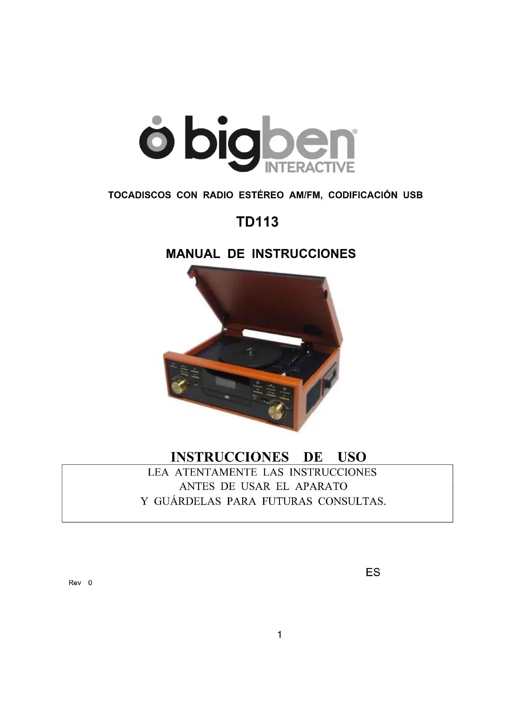 Encuentra gratis el manual del aparato TD113SPS BIGBEN en formato PDF.