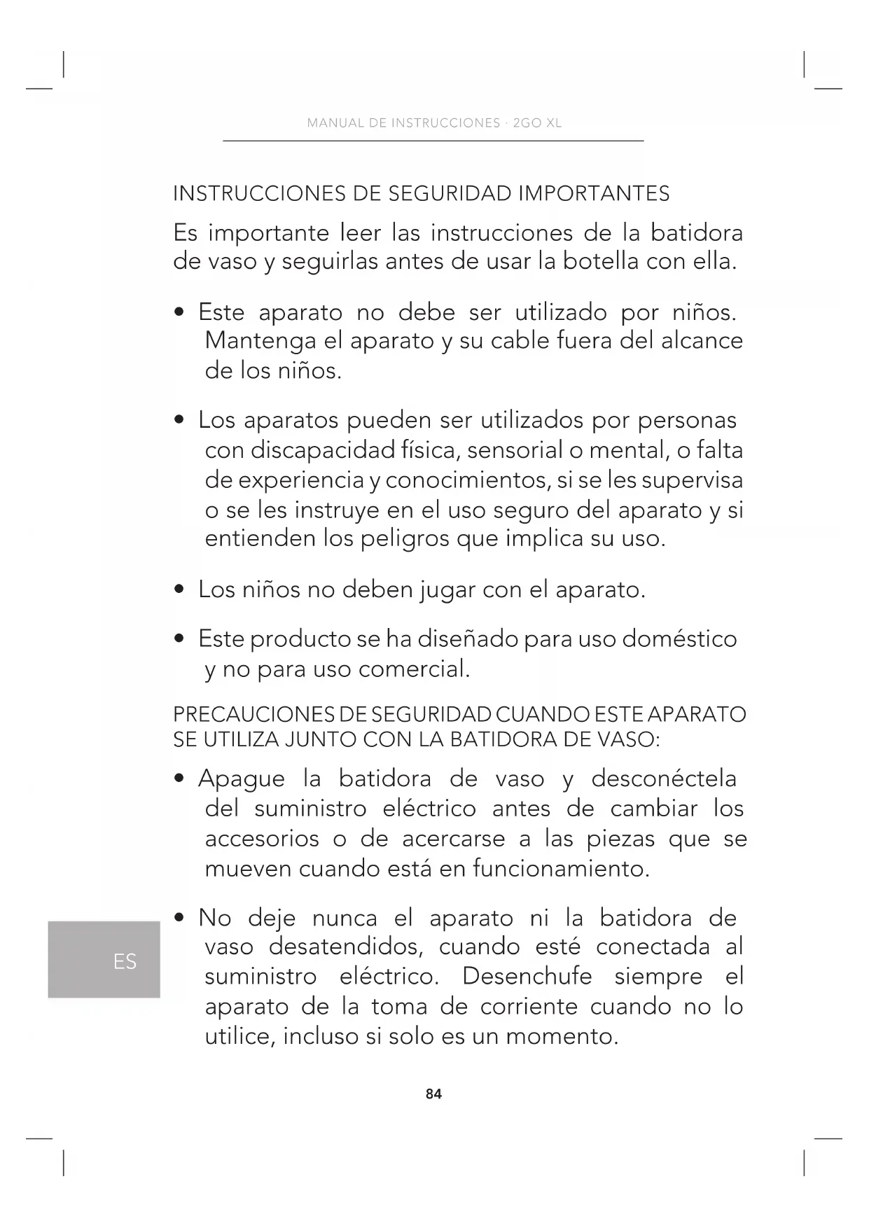 - No utilice la batidora de vaso más de 3 minutos con la Botella 2GO.87