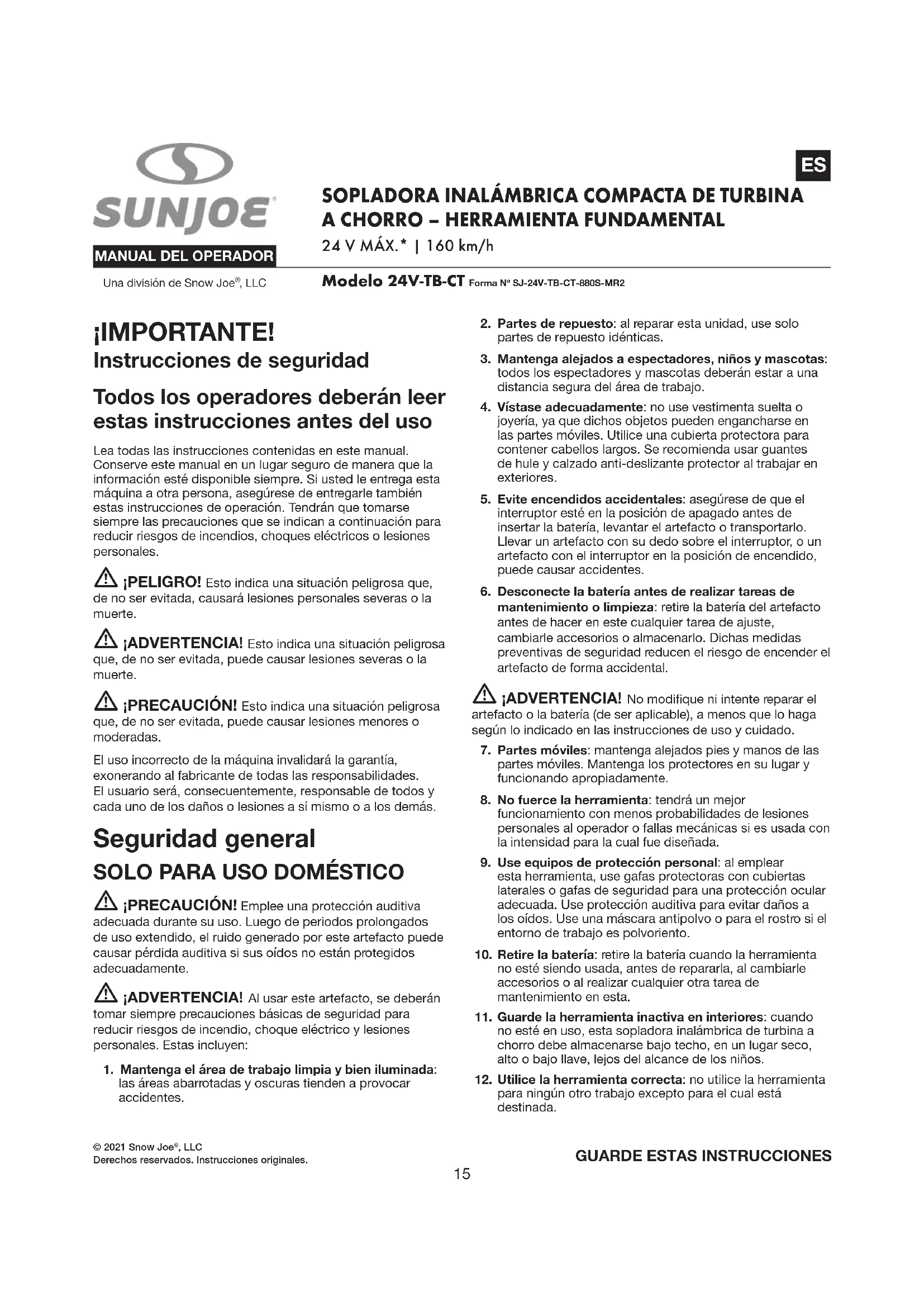 MANUAL DE USUARIO 24VTBCT Sun Joe