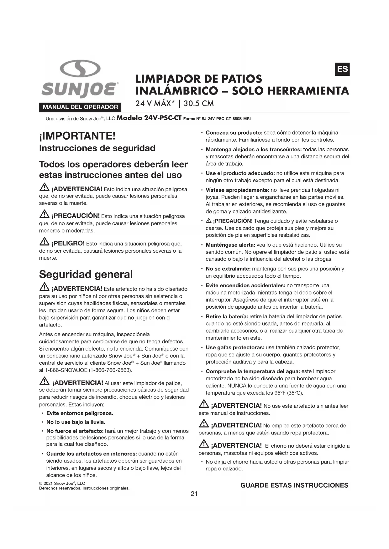 MANUAL DE USUARIO 24VPSCCT Sun Joe