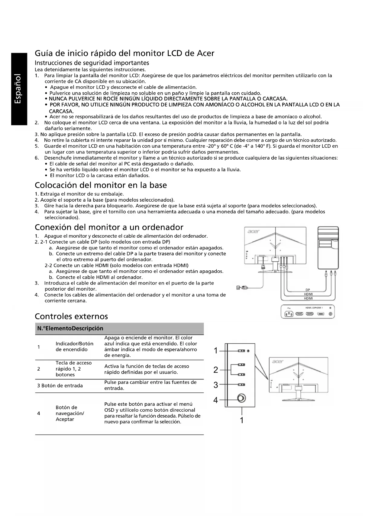 Manual de inicio=rápido (QSG) do monitor LCD da Acer