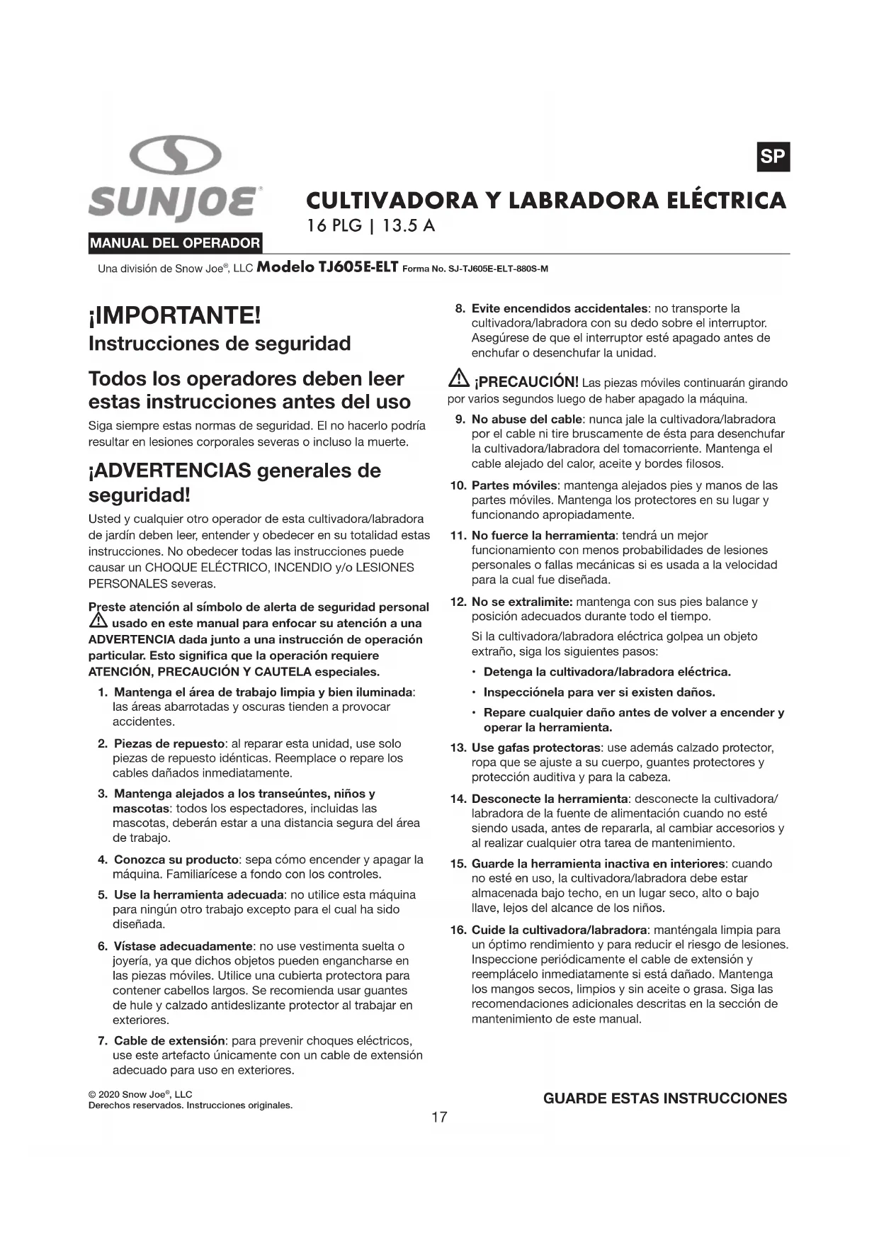 MANUAL DE USUARIO TJ605EELT Sun Joe