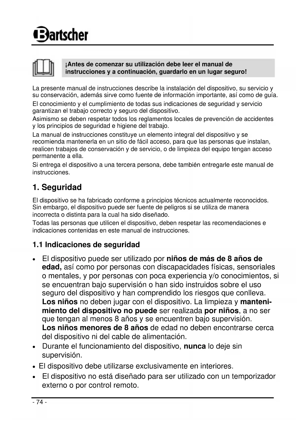 MANUAL DE USUARIO 700298G BARTSCHER