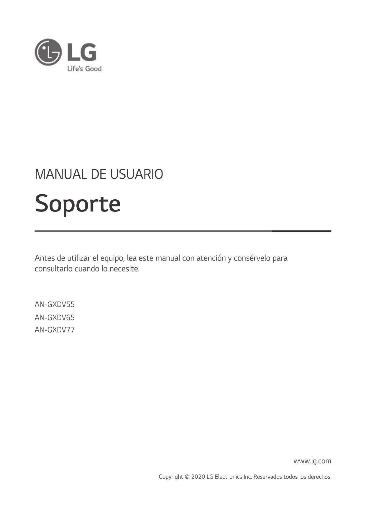 Antes de utilizar el equipo, lea este manual con atención y consérvelo para consultarlo cuando lo necesite. www.lg.com Copyright © 2020 LG Electronics Inc. Reservados todos los derechos.ESPAÑOL