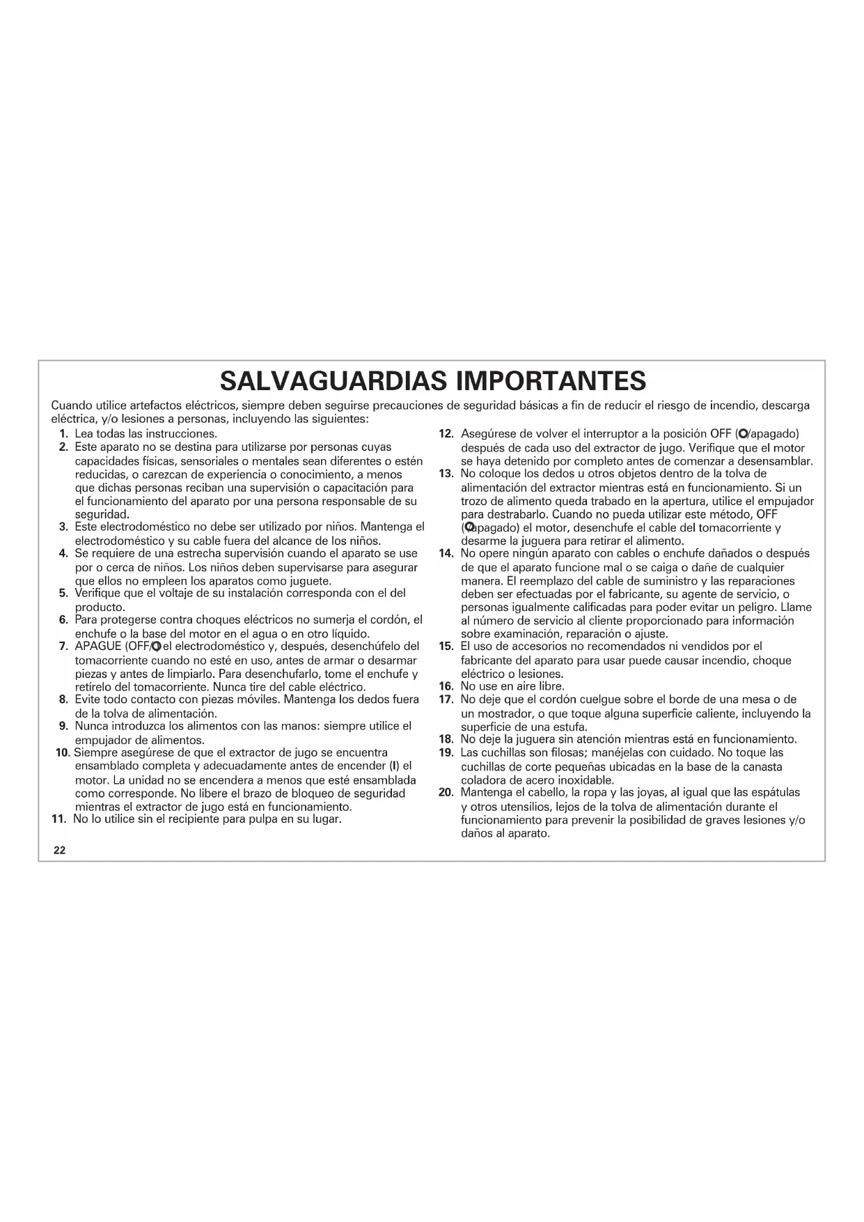 22. Siempre use el extractor de jugo sobre una superficie seca y plana.