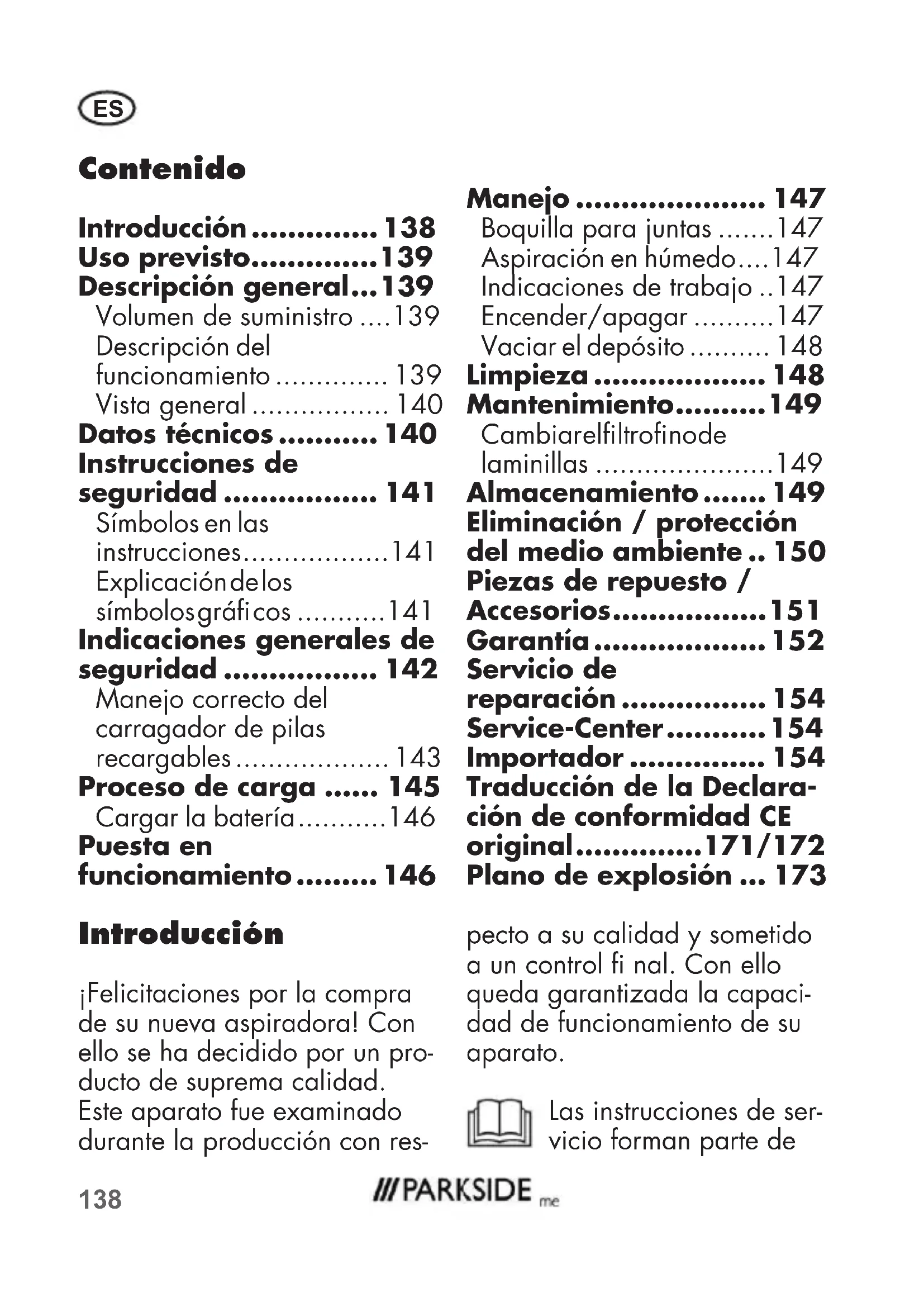 - Indicaciones generales de seguridad p. 142
