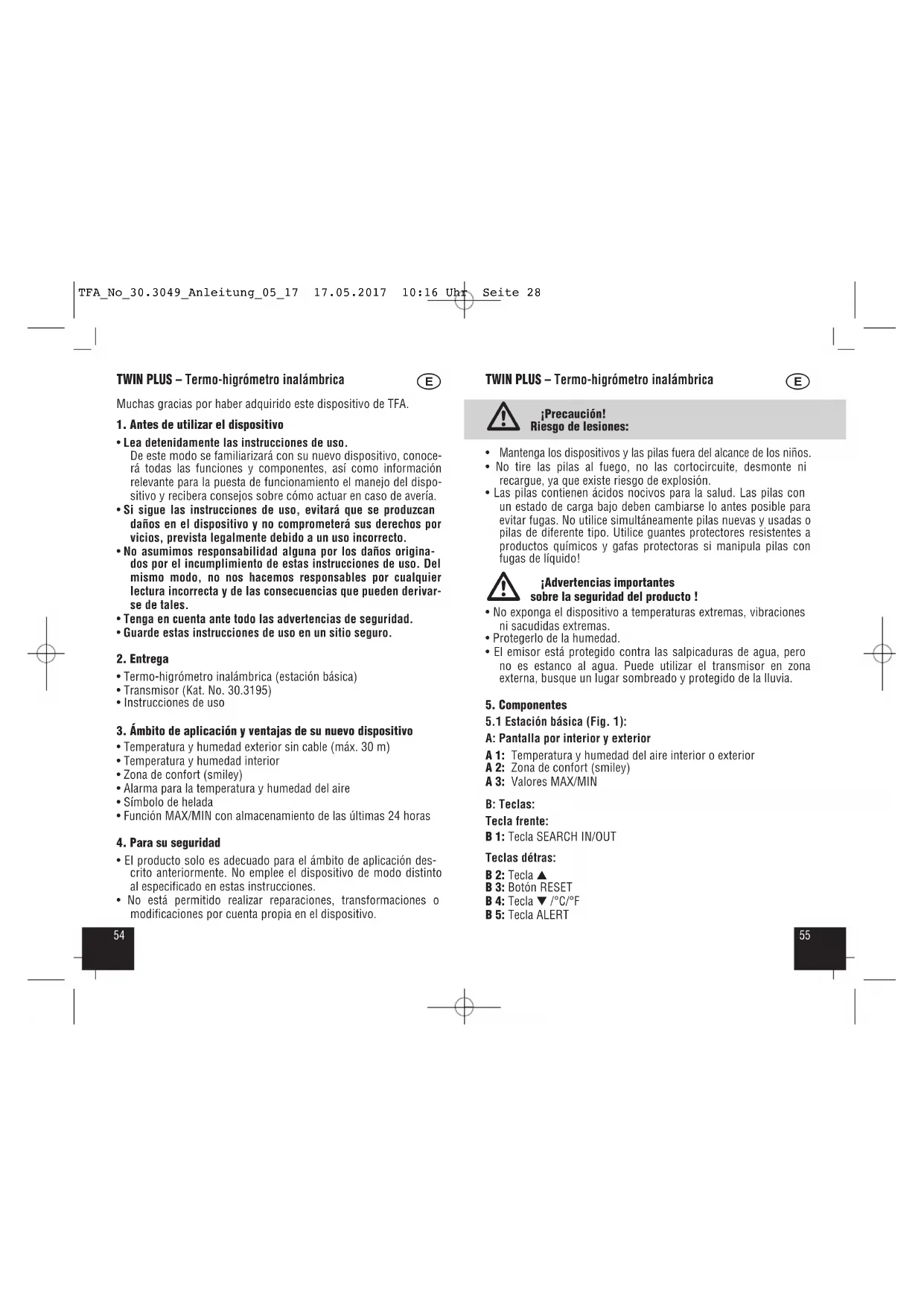 Este producto ha sido fabricado con materiales y componentes de máxima calidad que pueden ser reciclados y reutilizados. TFA_No_30.3049_Anleitung_05_17 17.05.2017 10:16 Uhr Seite 316362 TWIN PLUS – Termo-higrómetro inalámbrica