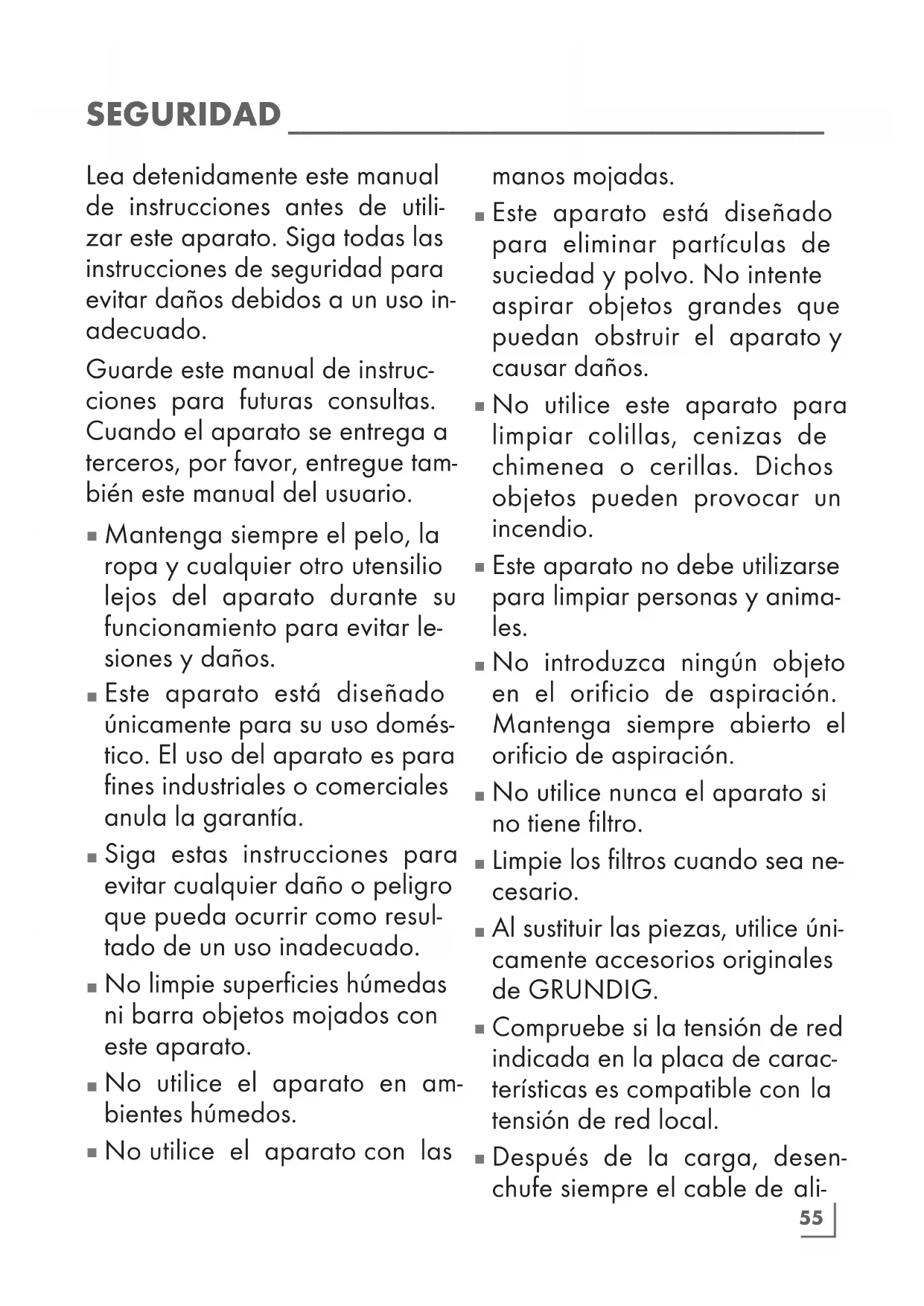 VCP 5030 - Aspiradora GRUNDIG - Manual de uso y guía de instrucciones gratis